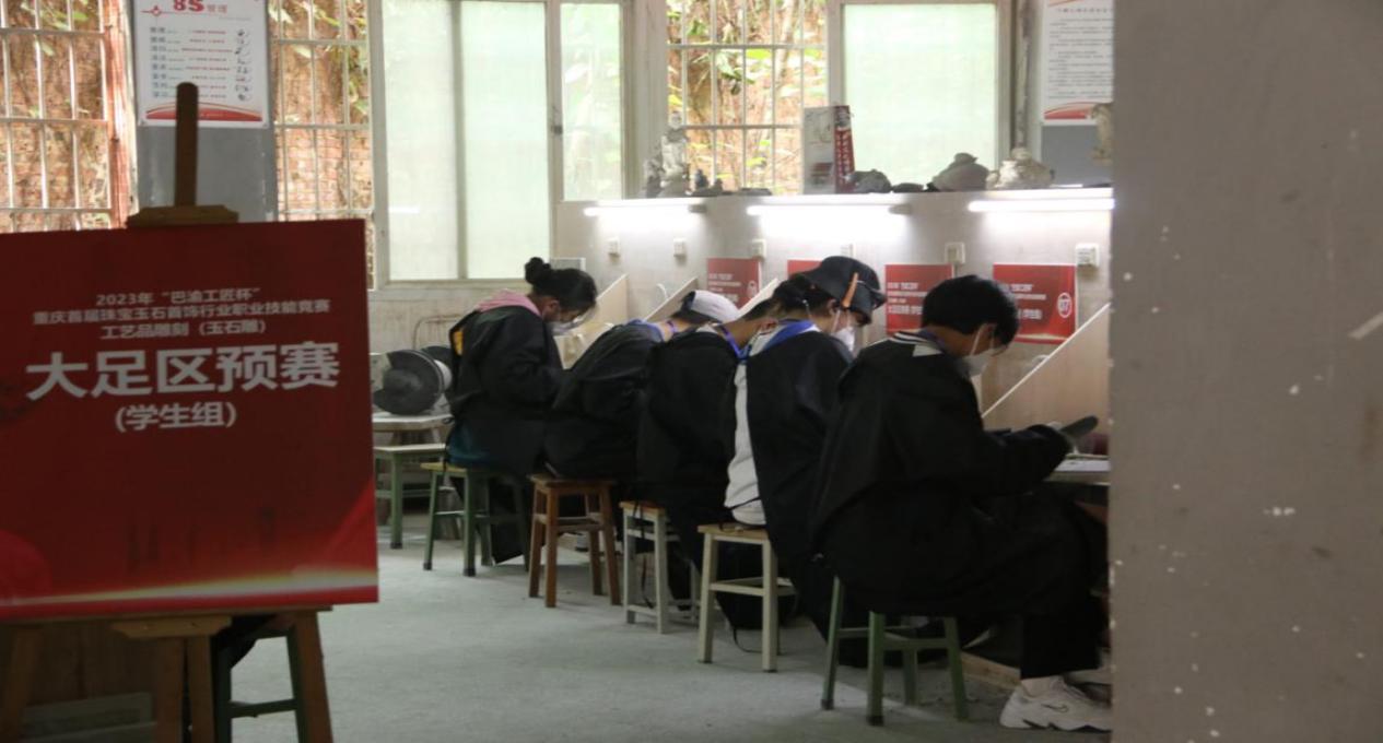 为充分发挥职业技能竞赛示范、引领、带动作用,创造高品质生活,推动高质量发展, 10月20日-10月22日,重庆市大足职业教育中心顺利承办2023年“巴渝工匠杯”重庆市首届珠宝玉石首饰行业职业技能竞赛工艺品雕刻(玉石雕)大足区预赛。