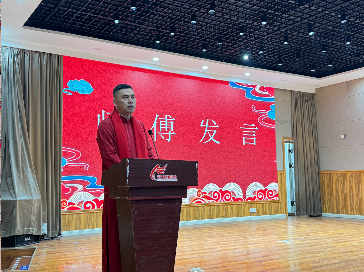 活动最后,重庆市大足职业教育中心党委委员、副校长李再明上台致辞,对本次拜师仪式给予了高度评价,并希望师徒双方能够共同努力,传承传统技艺和中华文化。