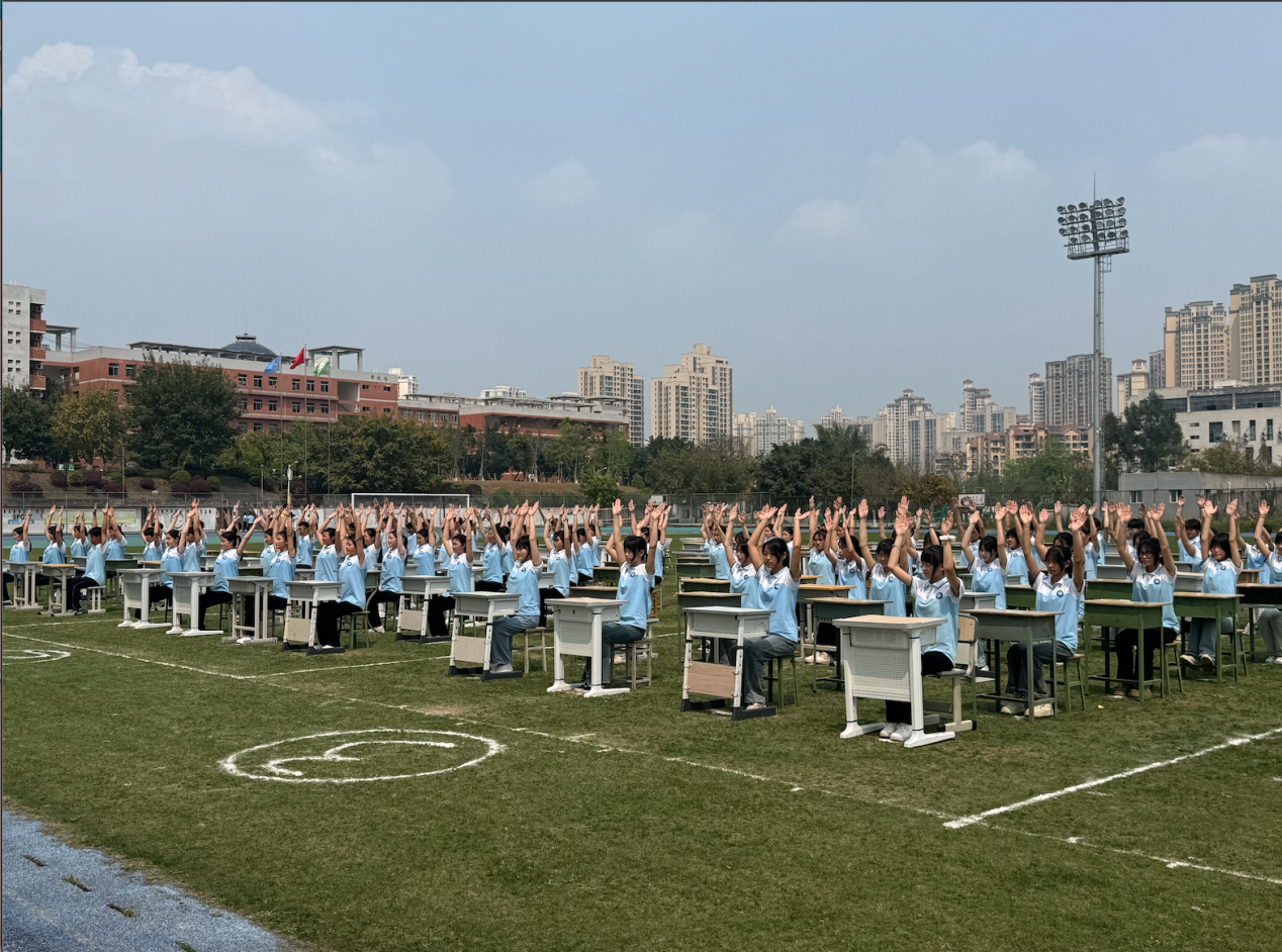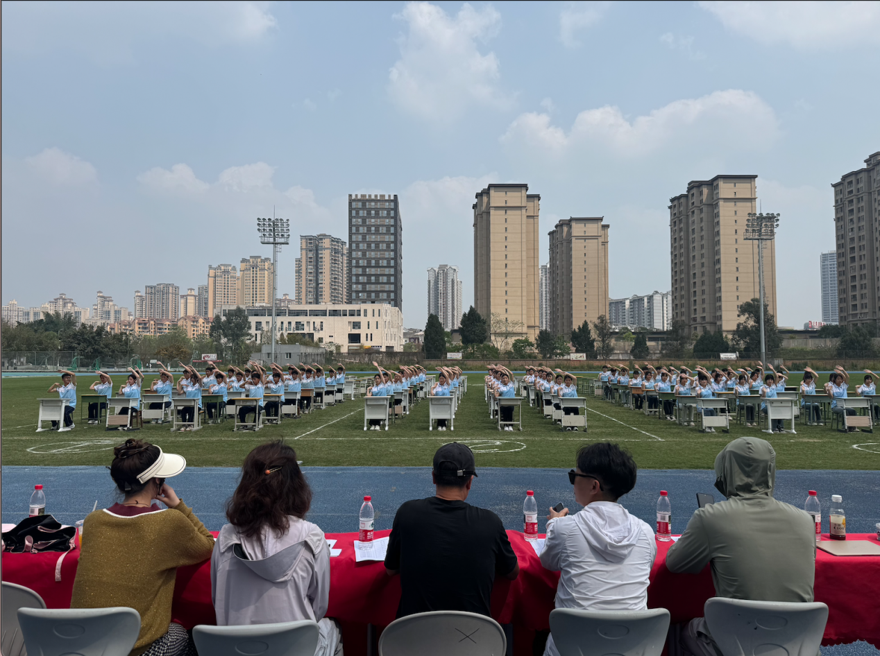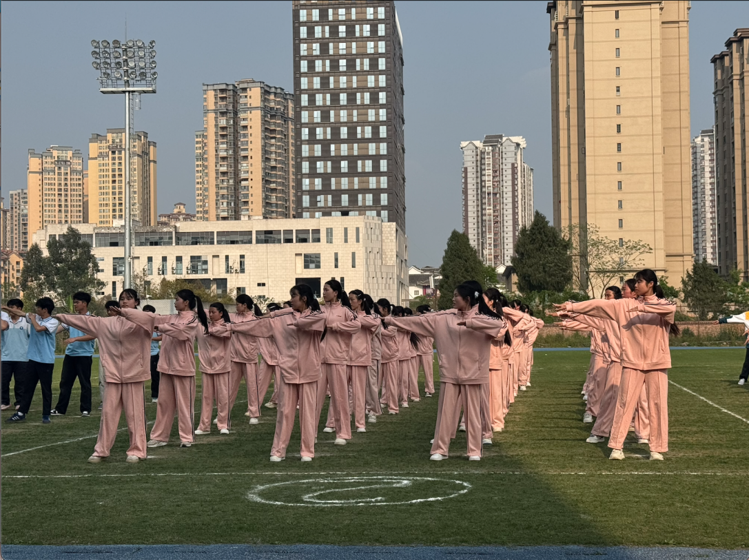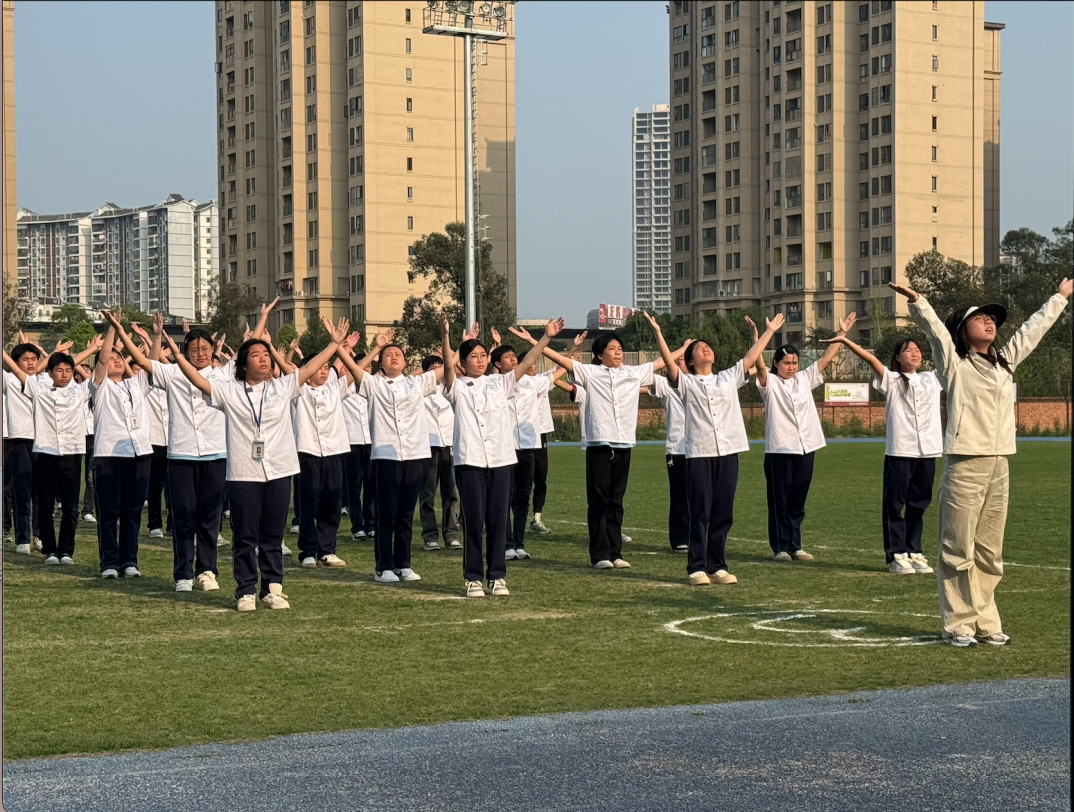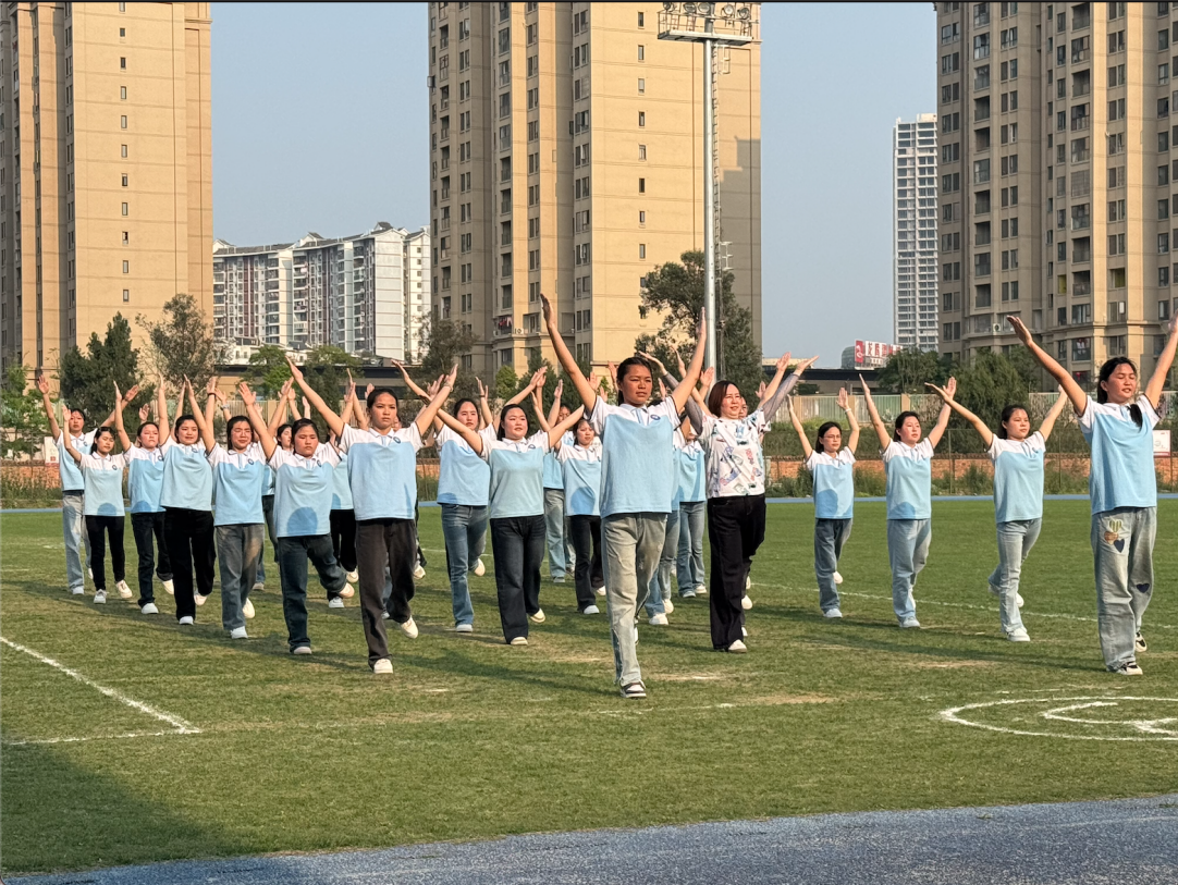 2025年4月10日,重庆市大足职业教育中心现代教育服务系在海棠校区田径场举行了第九套广播体操暨室内韵律操比赛。此次活动积极响应《“健康中国2030”规划纲要》的号召,旨在通过体育锻炼增强学生体质,促进青少年健康成长,同时进一步丰富校园文化生活,培养学生的集体荣誉感和团队协作精神。