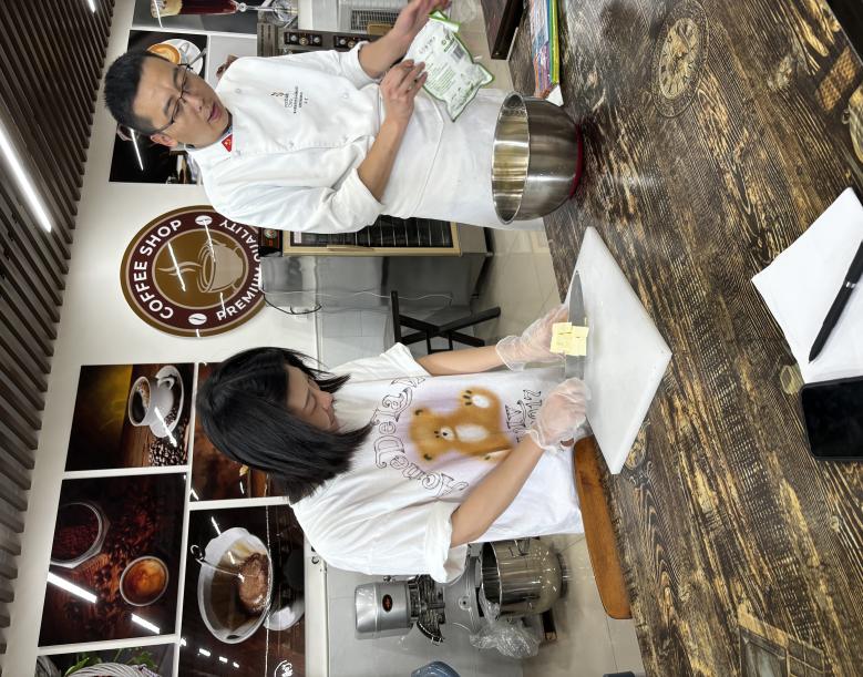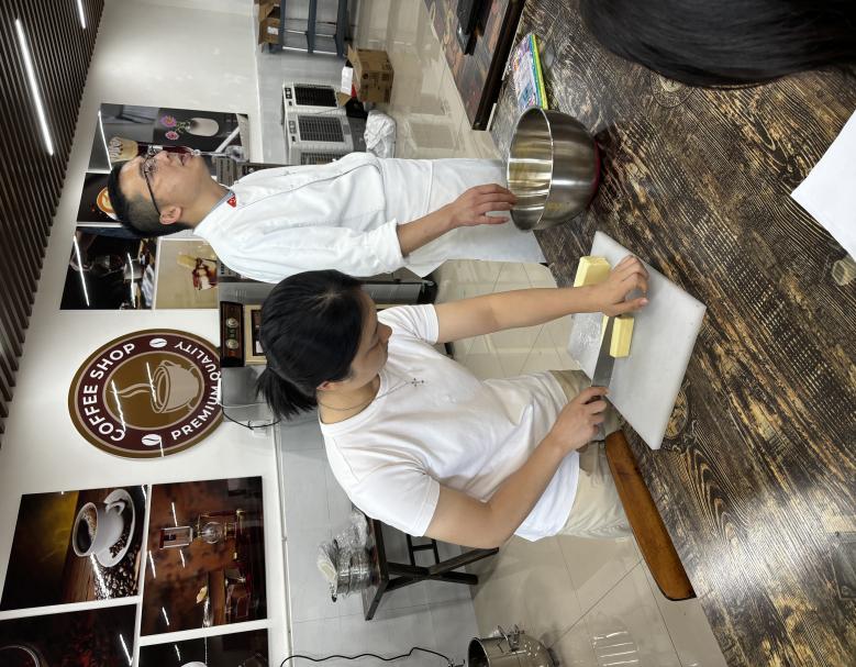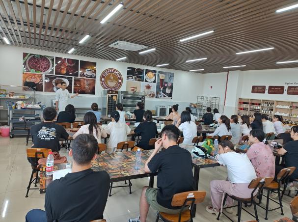 下午2:30,培训转至精工楼三楼咖啡实训室,特邀第46届世界技能大赛中国集训队烘焙项目专家教练李哲主持实操培训。李教练以“理论讲解+现场演示”方式,依据烘焙基础理论工艺流程,指导教师亲手操作,如面团调制、馅料、多功能搅拌机使用方法等。教师们在专业指导下,近距离观摩了国际赛事级烘焙技巧,通过实践感受了烘焙工艺的精准把控等细节要点。培训聚焦教学场景与行业标准的衔接,助力教师提升专业技能,为优化课程设计与实践教学提供技术支撑。