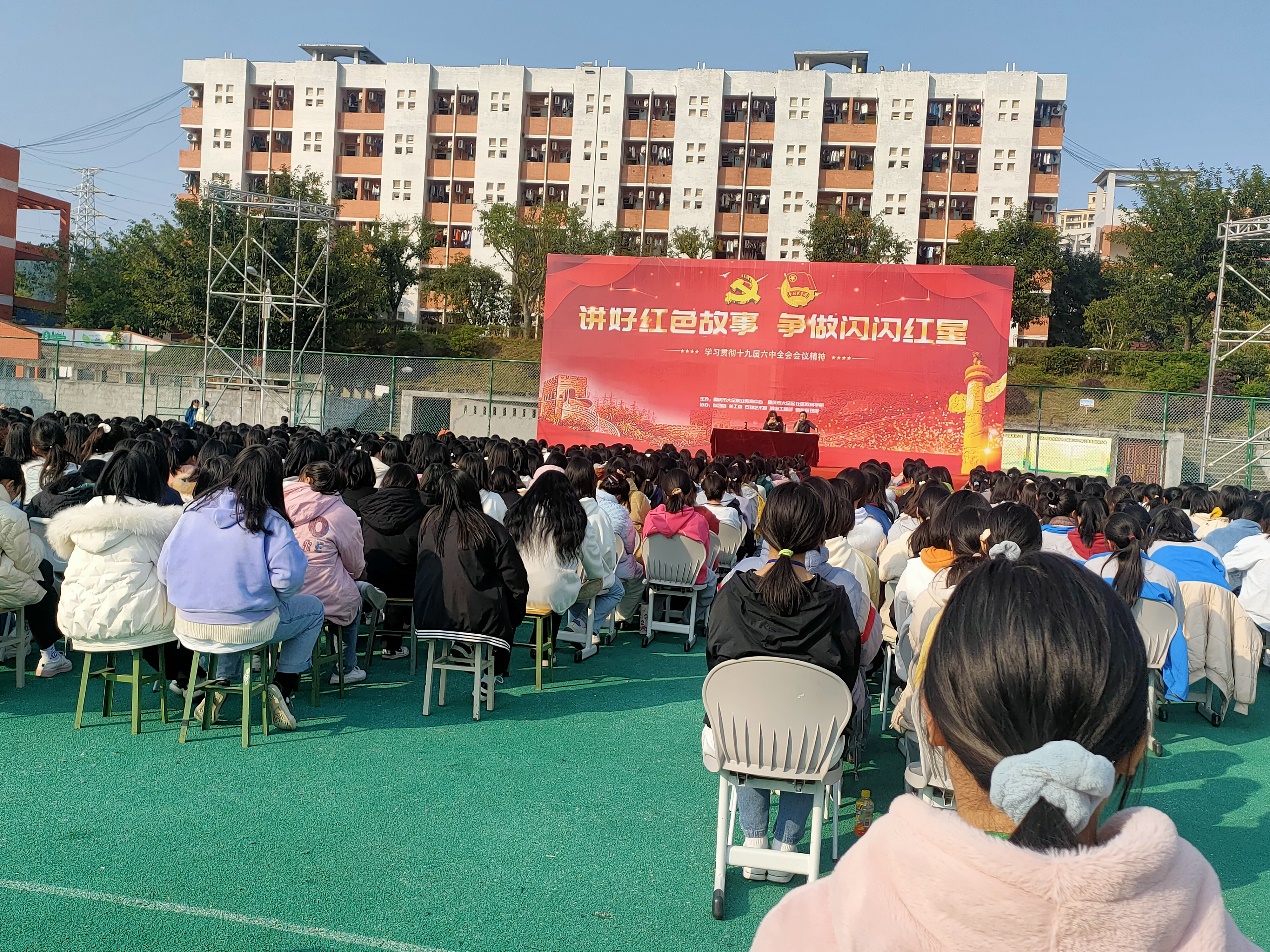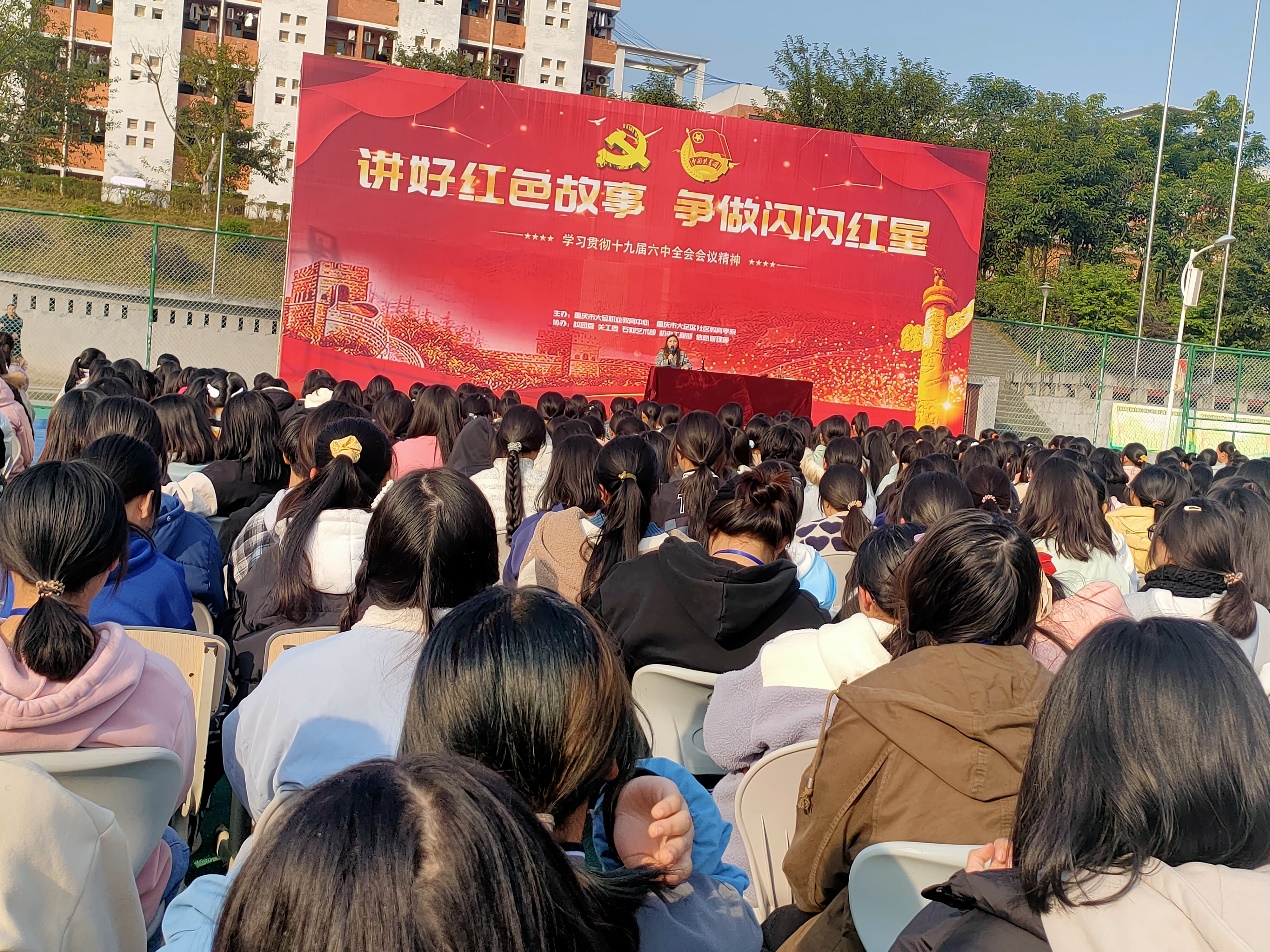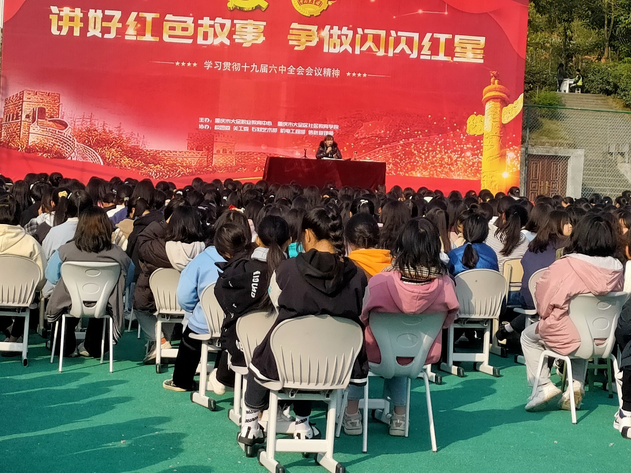 2021年12月1日,职教中心石刻艺术部全体女生在班主任和任课教师的组织下,在学校足球场举行女生大会。