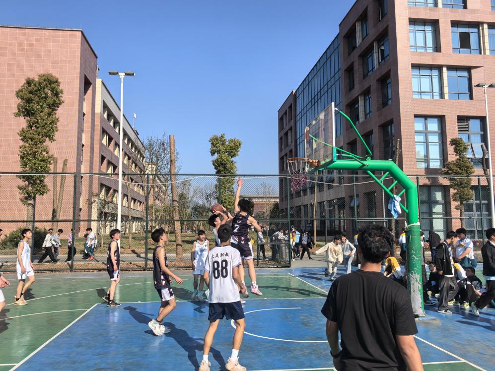 本着友好、拼搏的精神,比赛在裁判清脆的哨声后拉开帷幕,高高抛起的篮球瞬间成为全场的焦点。各班学生由课堂走上篮球场,在赛场上爆发出蓬勃的生命力和顽强的意志力,彻底点燃了现场的观众们,观众们热烈地为每一次激烈拼抢而呐喊,为每一次篮球入框而欢呼。各个球队在比赛过程中,紧密配合,团结一致,真正践行着“友谊第一,比赛第二”。