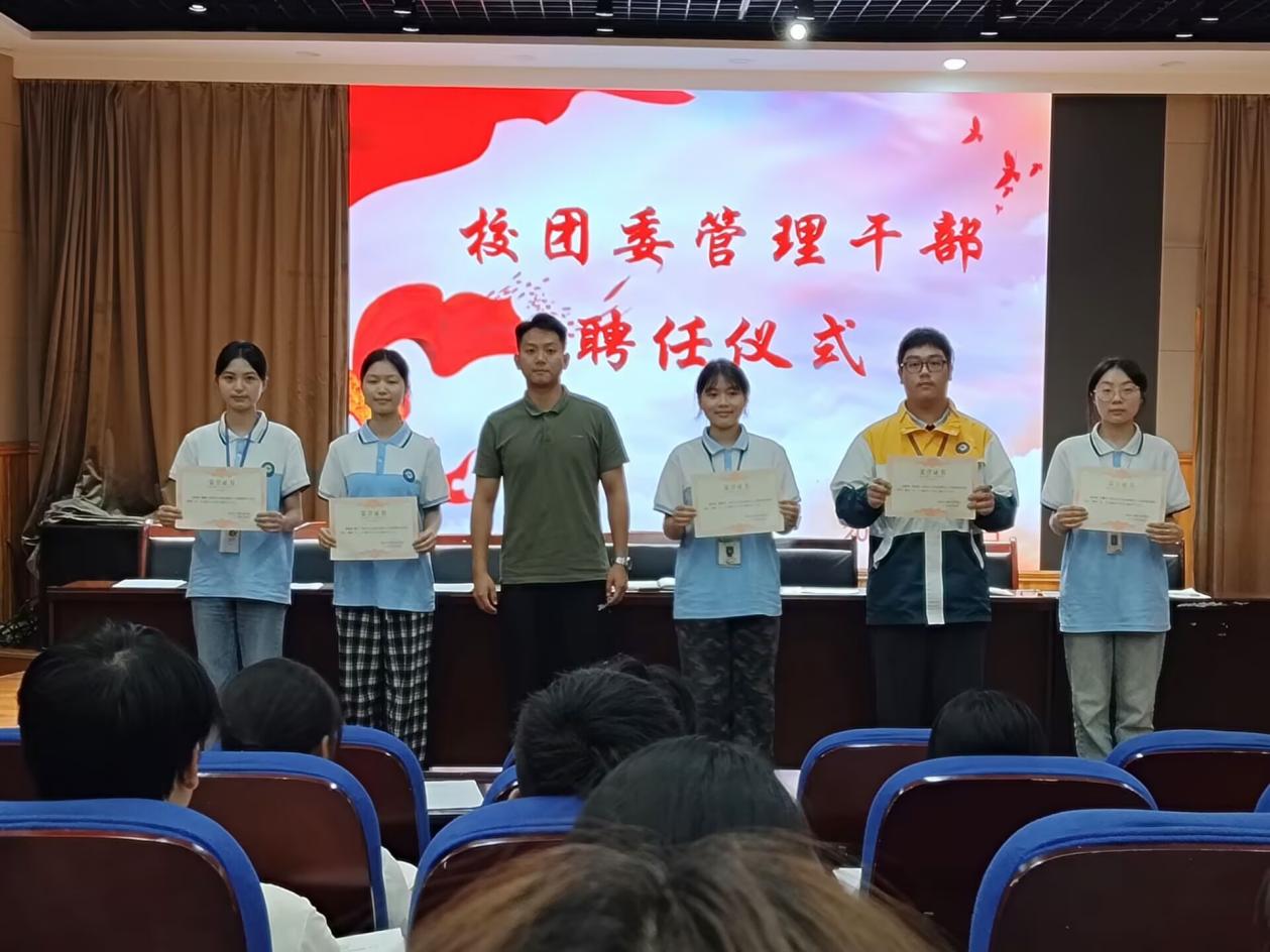 会议最后举行校团委新晋学生干部聘任仪式,团委新晋学生干部代表上台发言表示,认真履职尽责,热情服务同学,在岗位上发光发热,带领全体同学一起,在中职校园里收获知识、收获友谊、收获更好的自己!