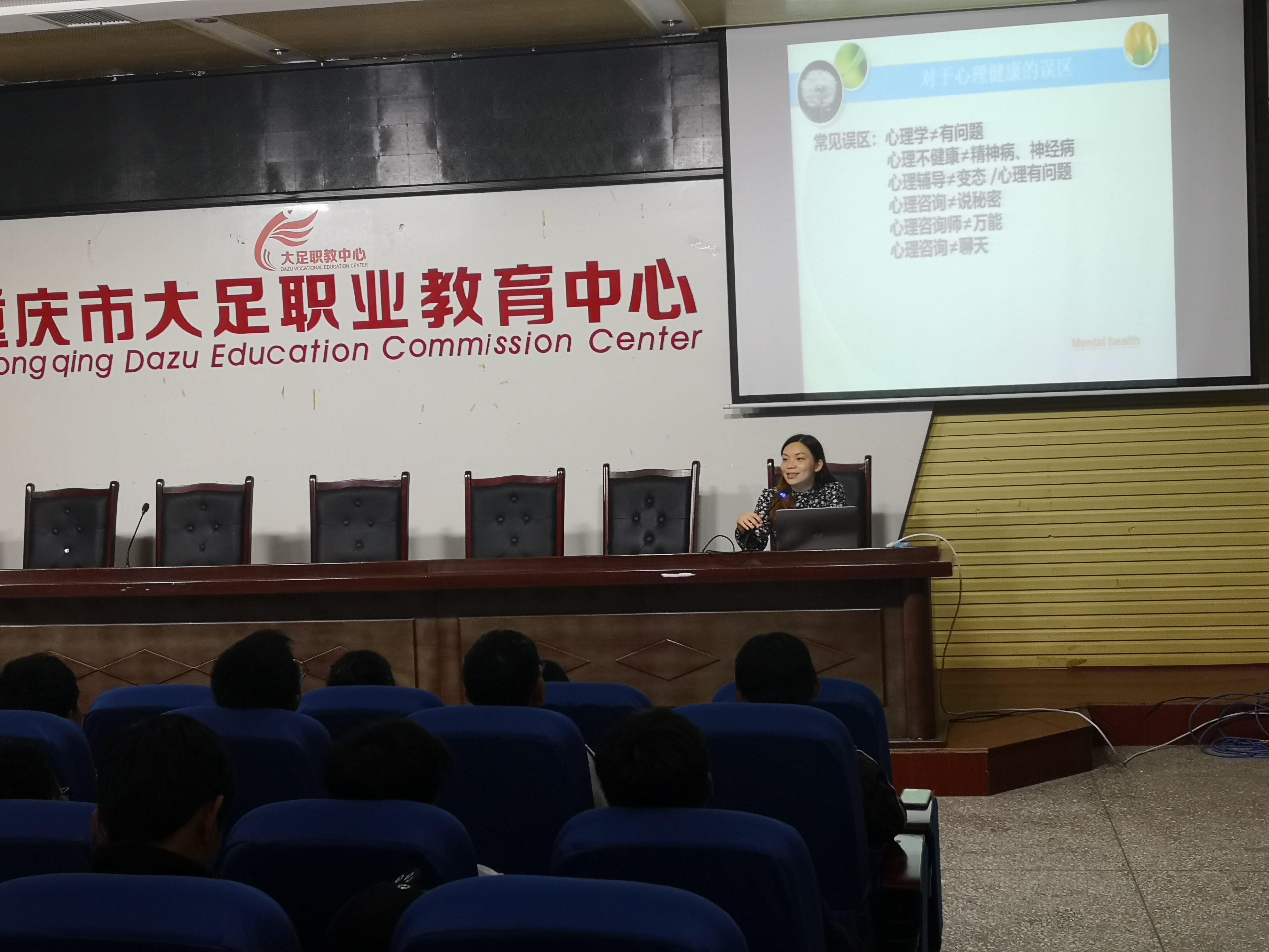 为促进学生对心理健康知识的了解,学会对自己的心理健康状态进行自我评定,掌握心理自助及求助方法,进而维护身心健康,2020年10月13日晚自习,职教中心心理健康中心心理老师张德琴在第一学术报告厅为信息部高一新生举办心理健康知识讲座。