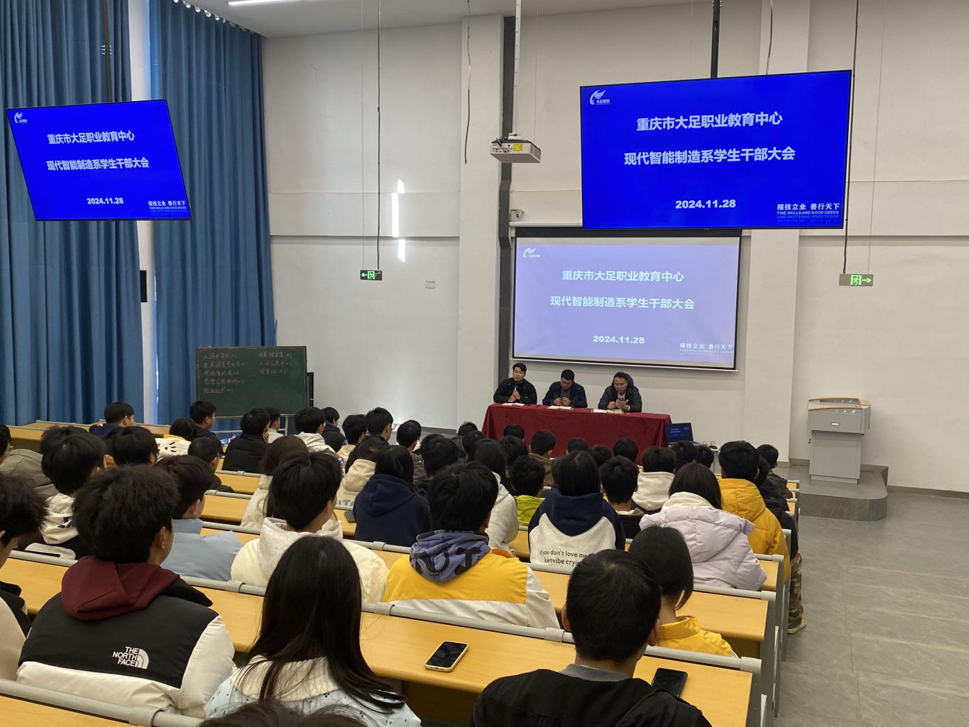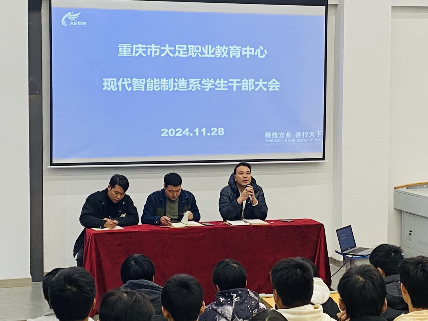 11月28日,职教中心现代智能制造系在高新校区睿智楼第二阶梯教室组织召开学生干部大会。会议旨在加强系部内部管理,强化学生干部服务意识和工作技巧;会议还对清洁卫生和学生行为习惯的规范进行了强调。系主任刘琦琪、副主任朱文彬,系部安全专干蒋元东老师出席会议作指导发言。