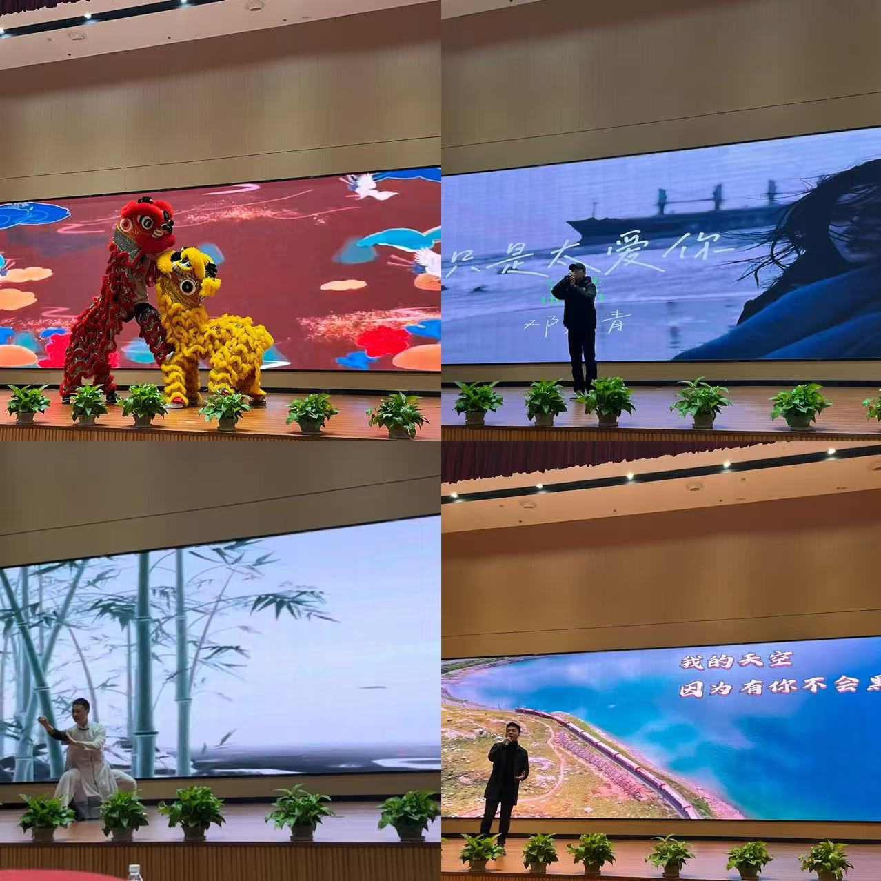祥龙献瑞辞旧岁,雄狮腾跃迎新年。文艺表演环节,2024 级 17 班的同学们率先登场,他们带来的舞狮表演《雄狮献瑞》,活灵活现地展现出瑞狮的灵动与祥瑞,瞬间点燃了全场的热情。2022 级 29 班的邓岸青同学用深情的嗓音独唱《只是太爱你》,真挚的情感如潺潺流水般流淌在校园的每一个角落。而宋旺老师的武术表演《竞技太极拳》刚柔并济,一招一式尽显中华武术的博大精深,引得台下阵阵喝彩。随后,周光强老师的一曲《最美的太阳》,激昂的歌声仿佛照亮了整个校园,让师生们沉浸在这充满活力的氛围之中,心潮澎湃,热血沸腾。