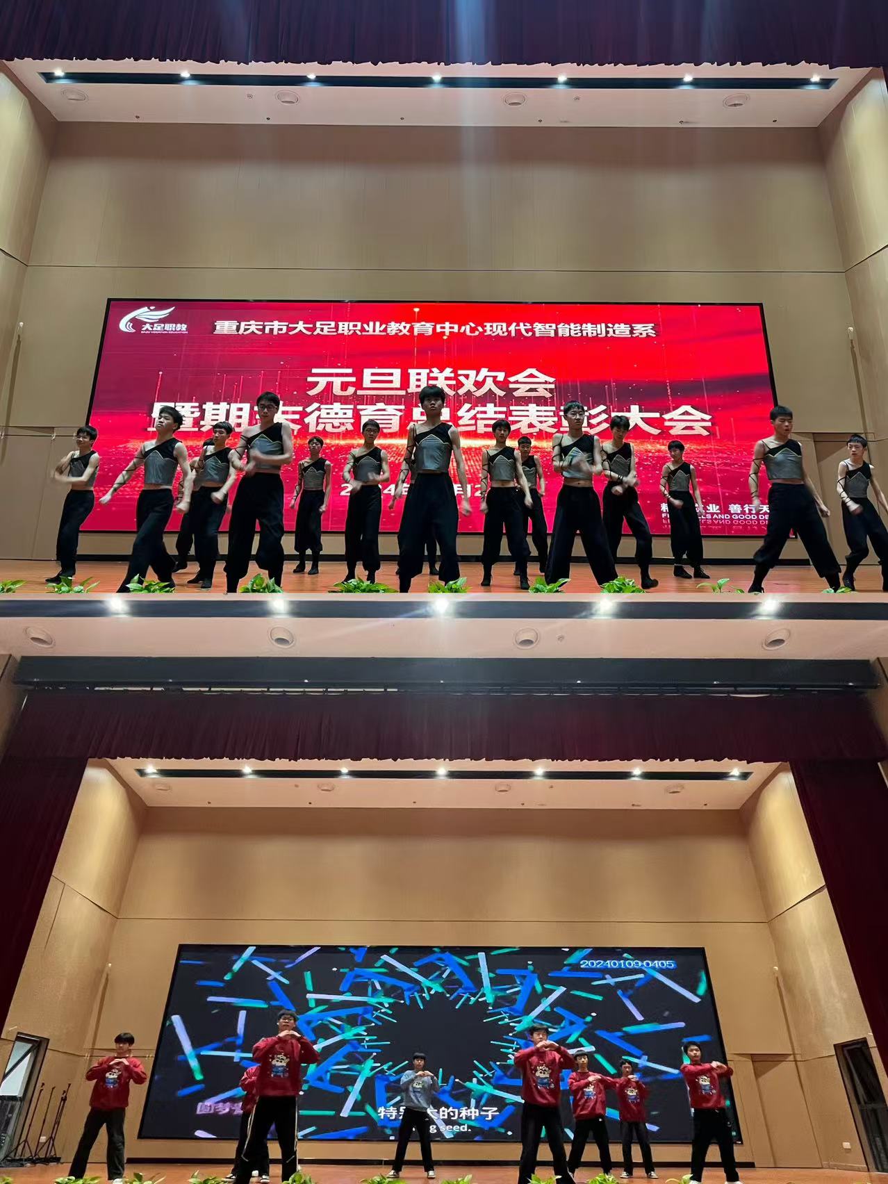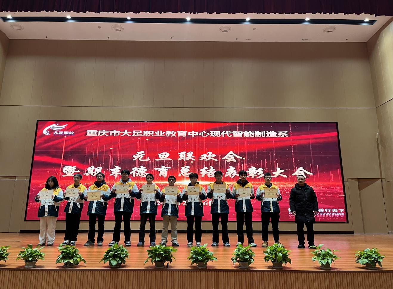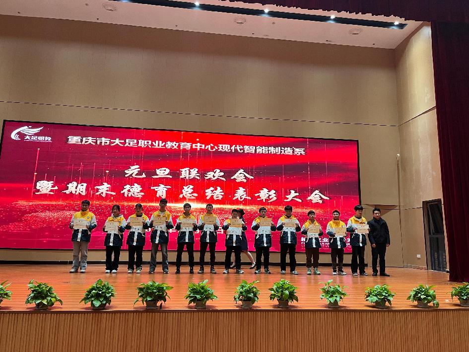 瑞雪庆嘉年,欢歌启新篇。2024年12月26日下午,重庆市大足职业教育中心现代智能制造系2025元旦联欢会暨期末德育总结表彰大会在高新校区仁智楼报告厅举行,师生齐聚一堂,共同迎接新年的到来,同时见证榜样的力量。