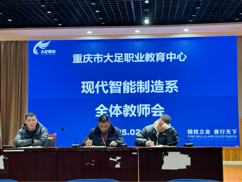 2025年2月15日,大足职业教育中心智能制造系2025年春季学期开学工作全体教师大会在海棠校区第二学术报告厅圆满举行。本次会议紧扣新学期工作任务要点,为全系教育教学工作精准规划布局,秉持“长风破浪会有时,直挂云帆济沧海”的坚定信念,助推专业发展再攀新高峰。