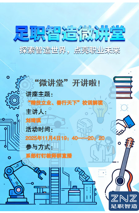 为助力师生深度领悟校训内涵,将“精善文化”与智能制造领域职业发展深度融合,2025年11月4日晚自习,职教中心现代智能制造系足职智造“微讲堂”以线上直播形式开展“‘精技立业、善行天下’校训解读”主题活动。