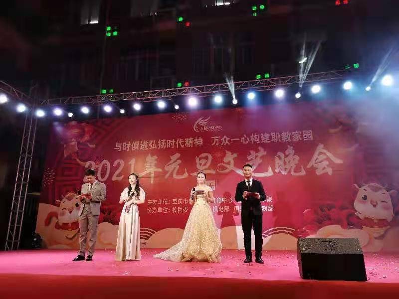 2020年12月29,重庆市大足职业教育中心机电工程部2021年元旦文艺汇演在两栋教学楼之间华丽上演。