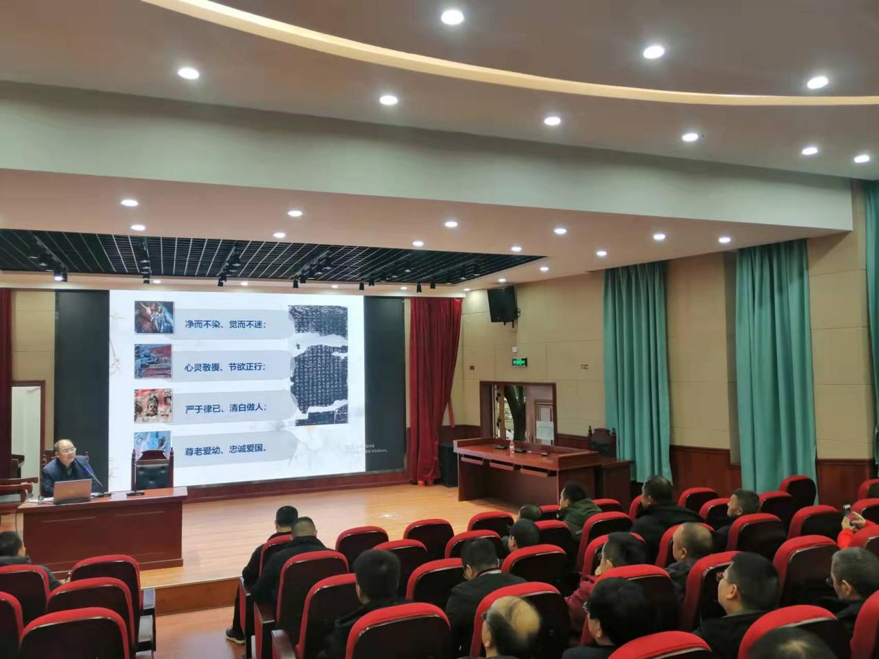 会上,王良中同志作了题为《漫谈大足石刻孝廉文化》专题讲座,大足石刻蕴含的“孝”文化和“廉”文化精髓出发,阐明了一个为人处世的简单道理,为人尽孝,处世该廉洁;“就是将对父母的爱敬,扩展至爱敬社会上所有的人,从家庭内做起,走向社会,敬老尊贤、感恩组织、服务人民,从而实现人生价值;“廉”就是要遵规守纪,依法执教,教书育人,为人师表,做一名优秀的人民教师。
