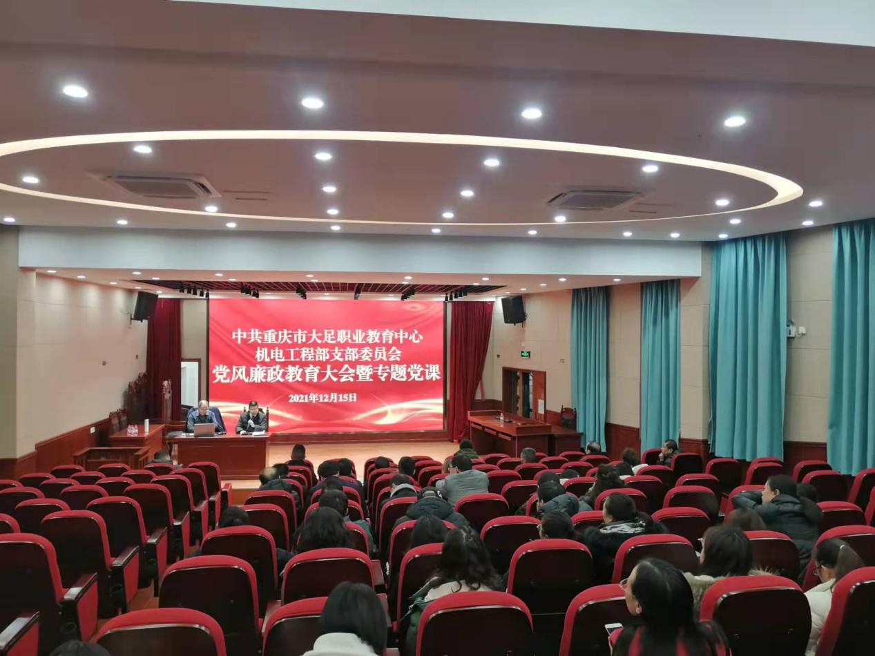 2021年12月15日,中共重庆市大足职业教育中心机电工程部支部委员会组织召开了党风廉政教育会暨专题党课会议由机电工程部党支部书记雷朝权主持。专题党课由学校党委委员、纪委书记王良中主讲,机电工程部全体教师参会听讲