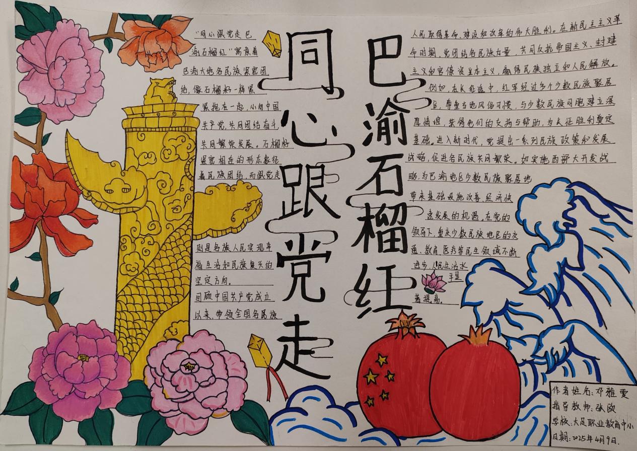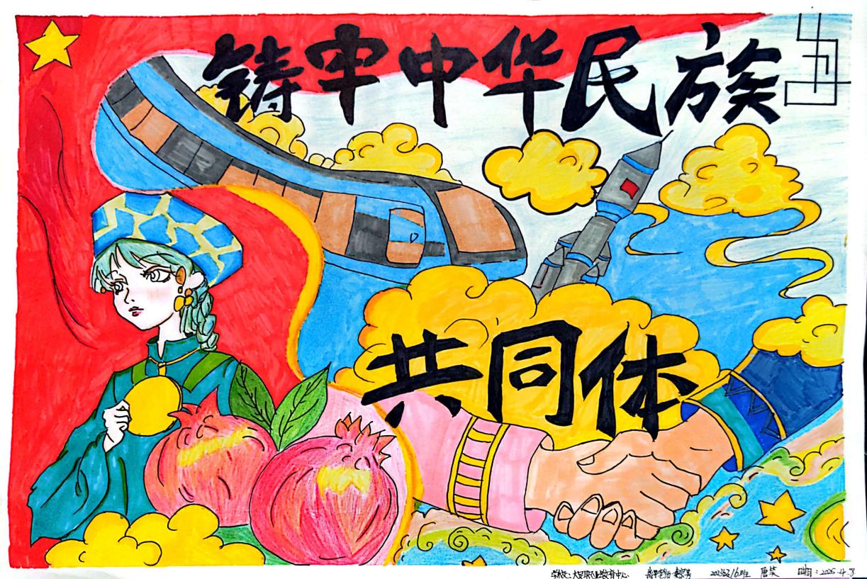 为深入学习贯彻习近平总书记关于加强和改进民族工作的重要思想,加强学校铸牢中华民族共同体意识教育,职教中心精心组织积极参与区教委关于铸牢中华民族共同体意识教育学生作品征集活动