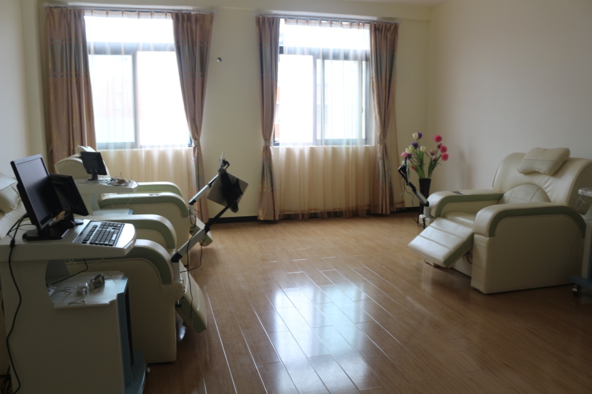 配备四台音乐身心放松系统设备,用作音乐放松治疗、放松训练、催眠治疗、自由联想等,既能够用于个体放松,也能做团体放松。是教师与学生放松情绪、调适身心平衡的场所。
