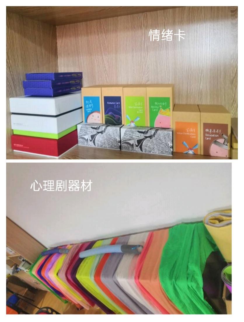 配备团体活动辅导箱,是心理教师针对某一心理问题进行室内团体辅导、游戏辅导的场所。同时也是学校心理社团活动场所,用于小型社团活动。