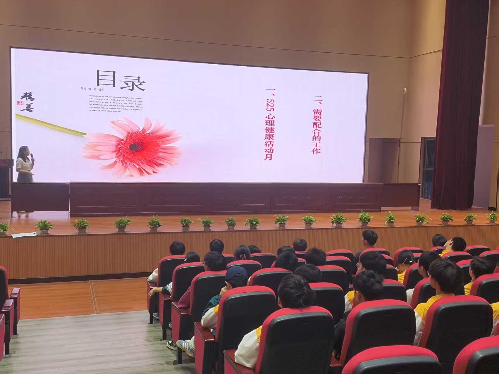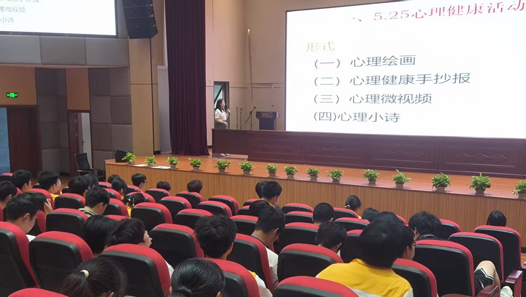 2025年4月30日上午课间操时间,重庆市大足职业教育中心在仁智楼学术报告厅召开了5.25心理健康节心理委员大会。此次会议由学校心理健康中心杨雪老师主持,高新校区全体心理委员参会。