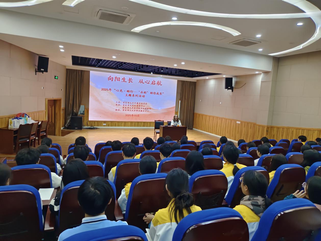 2025年10月22日,大足区“心光·砺行—‘石刻’助你成长”系列活动之“向阳生长从心启航”心理健康关爱活动走进重庆市大足职业教育中心本次活动由大足区教委主办,区教委资助中心区教委卫生保健所承办,大足职教中心组织协办大足职教中心100名享受资助的同学参加了当日活动。