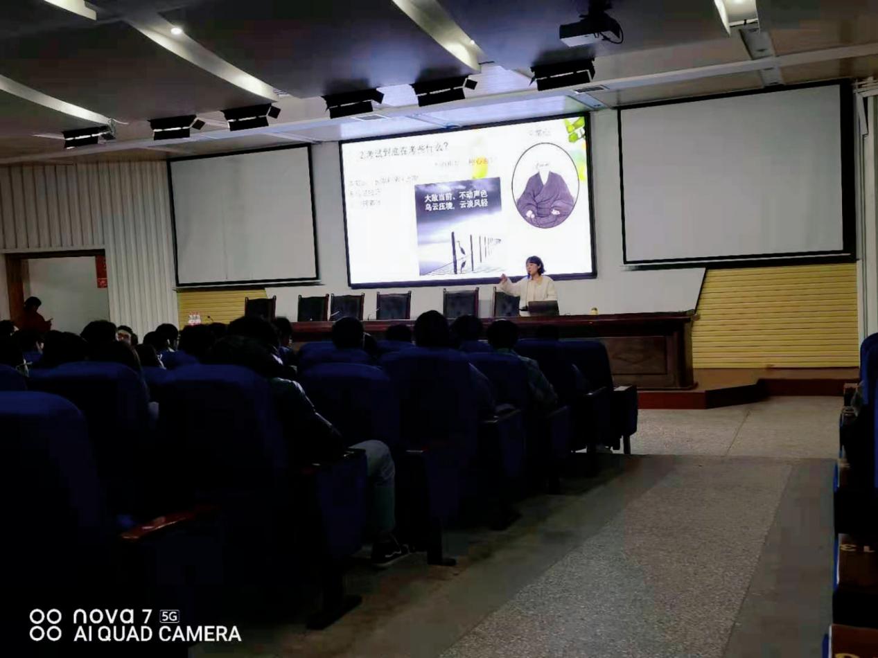 此次辅导活动分为两场,第一场为石刻艺术部和机械工程部的考生,第二场为信息艺术部的考生。此次辅导主要以讲座结合团辅的形式开展。在活动过程中,张琴老师很注重在分享中交流,互动中体验与训练首先,她用手臂测量技术了解同学们当下的心理状态。接着,张老师主要从认知调整几种不良心态调适备考及考场放松小技巧三大版块对学生进行辅导,帮助同学们建立合理认知调适不良心态,掌握一些实用放松小技巧。