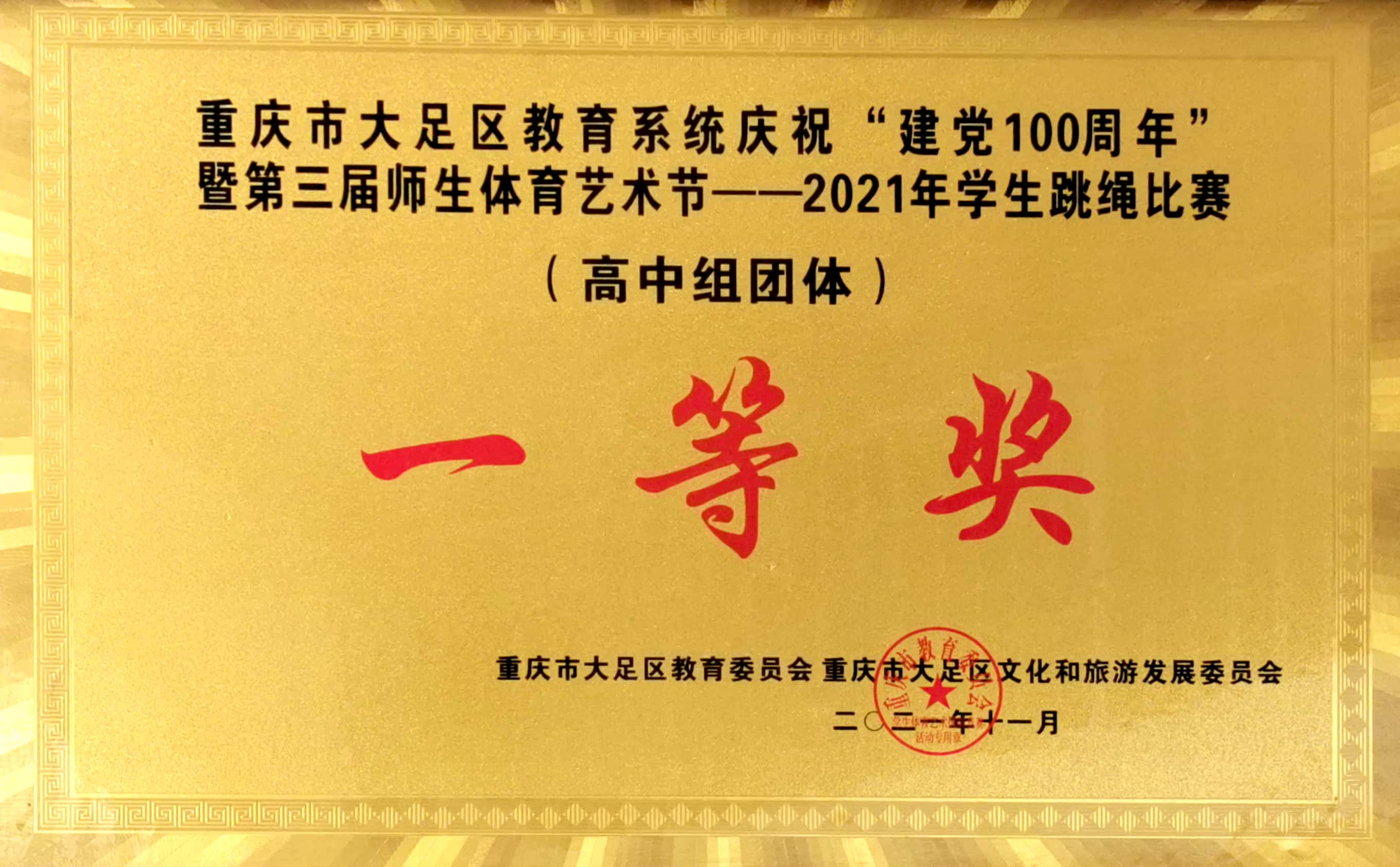 重庆市大足区教育系统庆祝“建党100周年”暨第三届师生体育艺术节——2021年学生跳绳比赛(高中组团体)一等奖