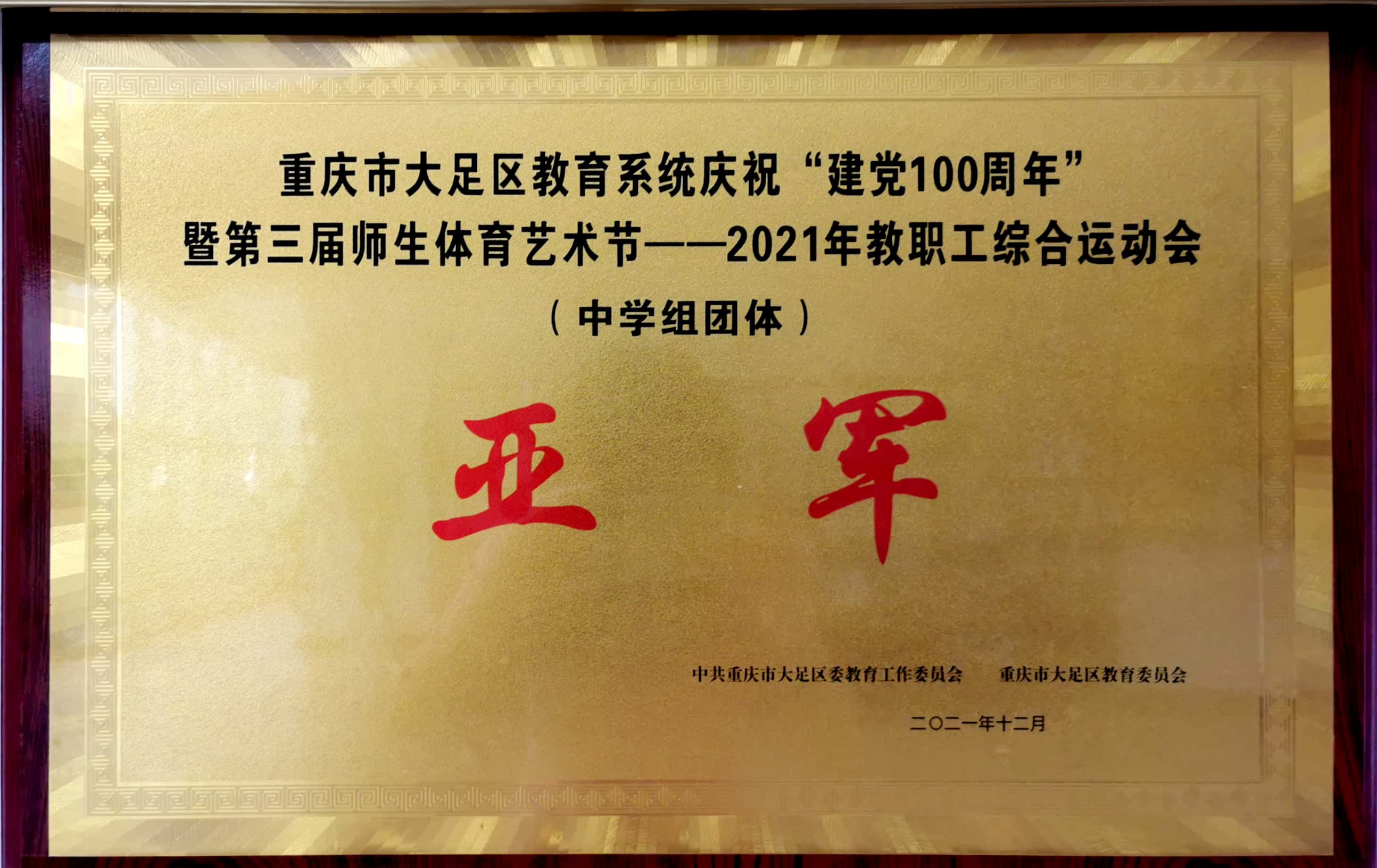 重庆市大足区教育系统庆祝“建党100周年”暨第三届师生体育艺术节——2021年教职工综合运动会(中学组团体)亚军