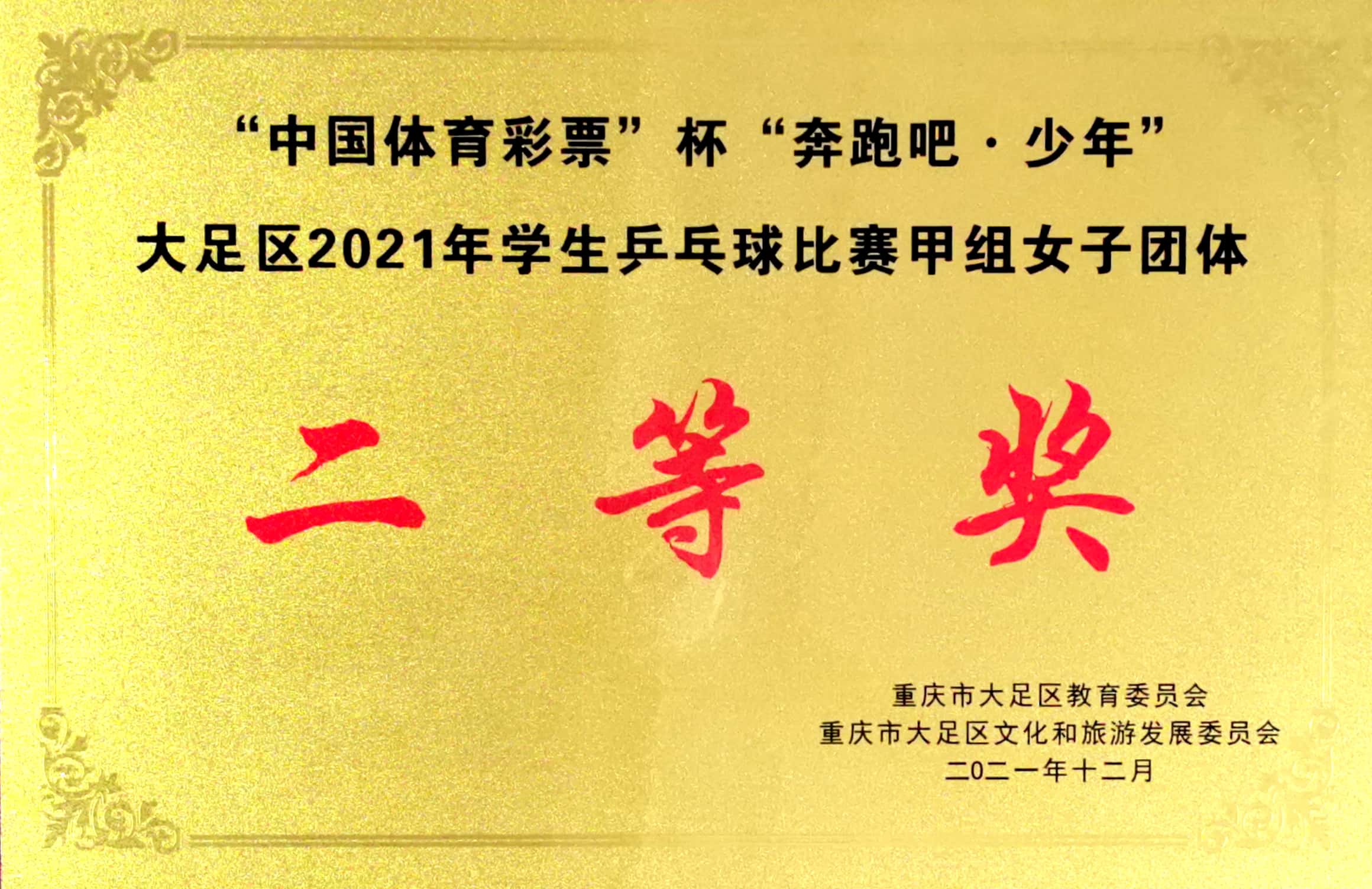 “中国体育彩票”杯“奔跑吧.少年”大足区2021年学生乒乓球比赛甲组女子团体二等奖