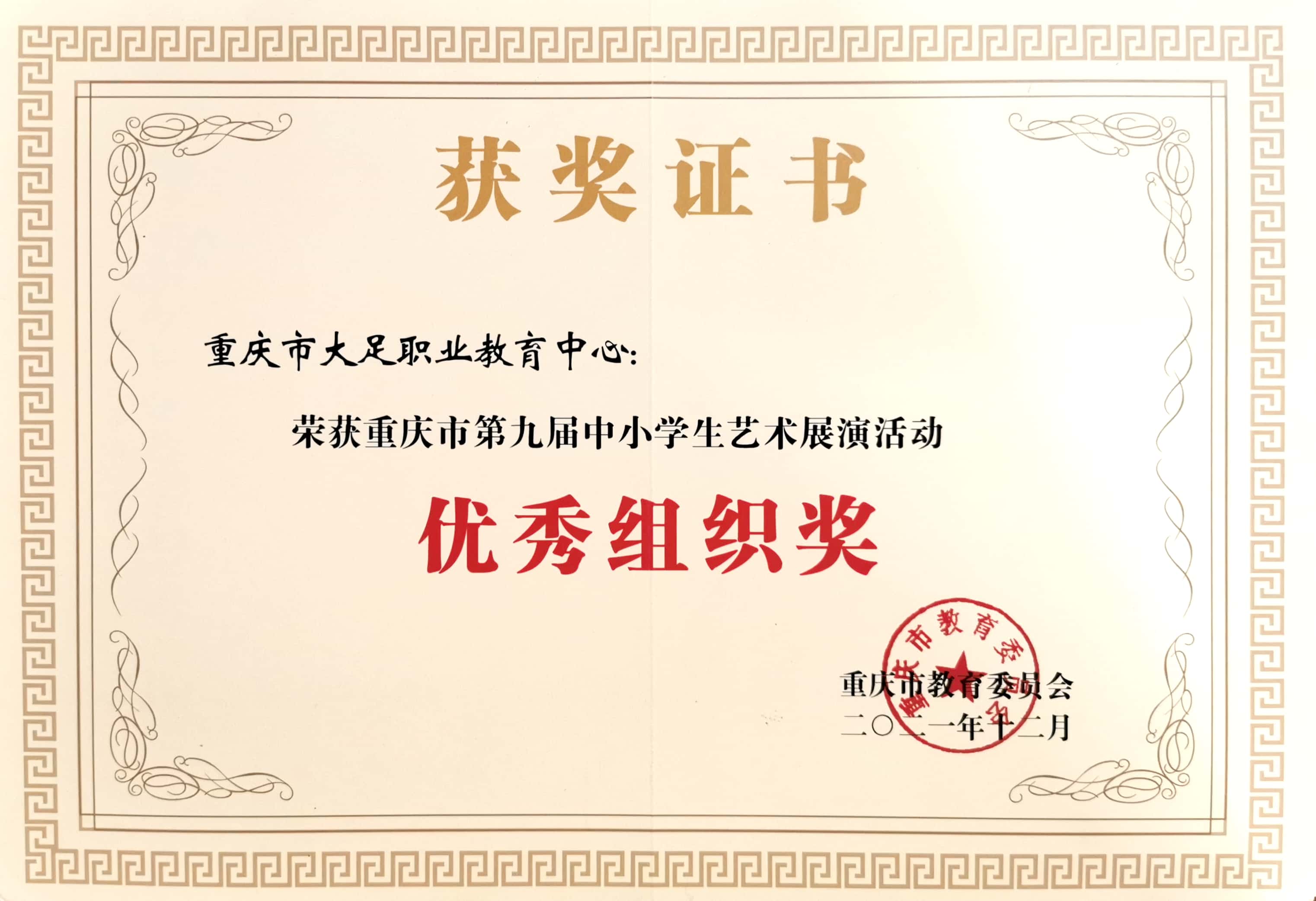 重庆市第九届中小学生艺术展演活动优秀组织奖