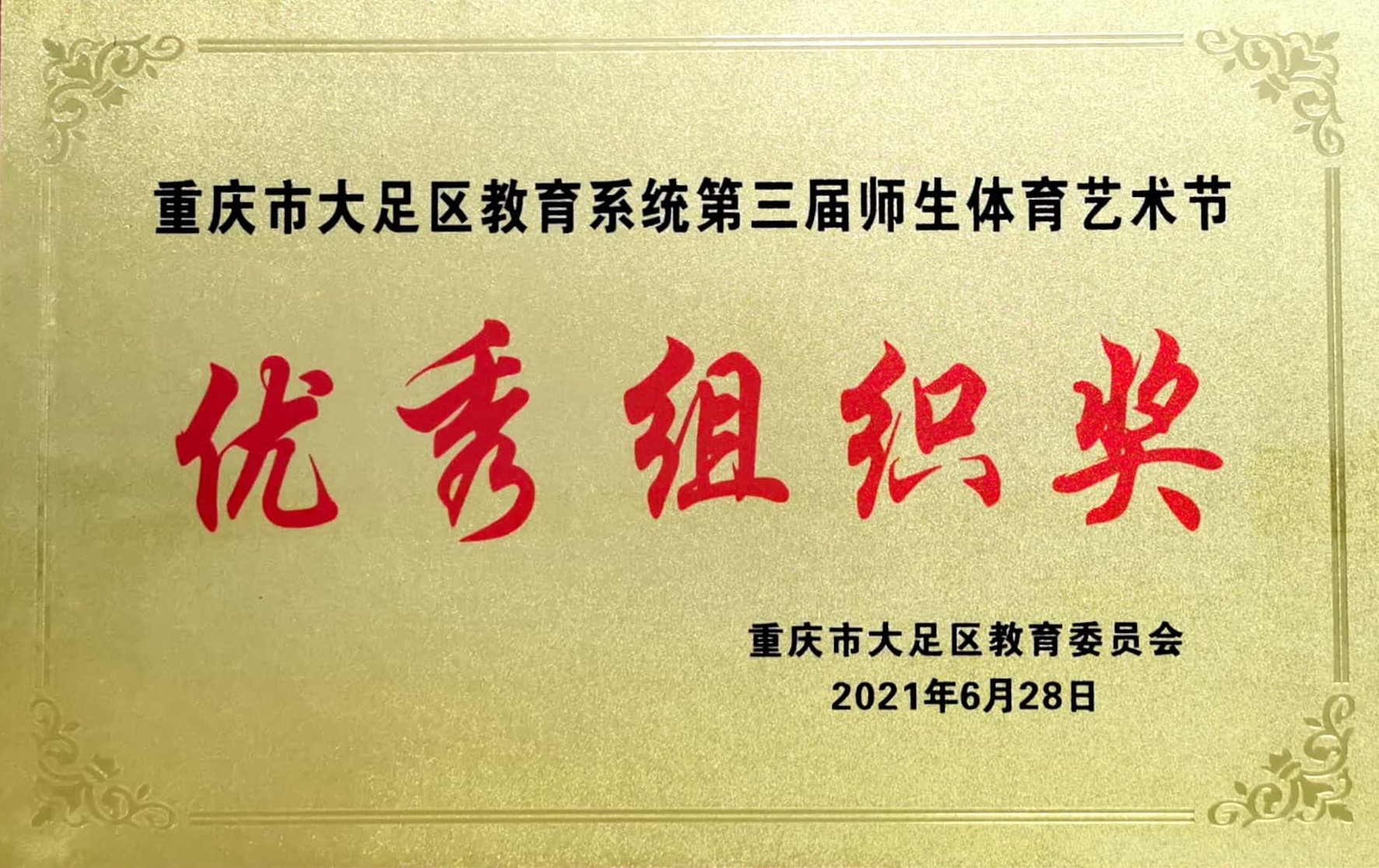 重庆市大足区教育系统第三届师生体育艺术节 优秀组织奖
