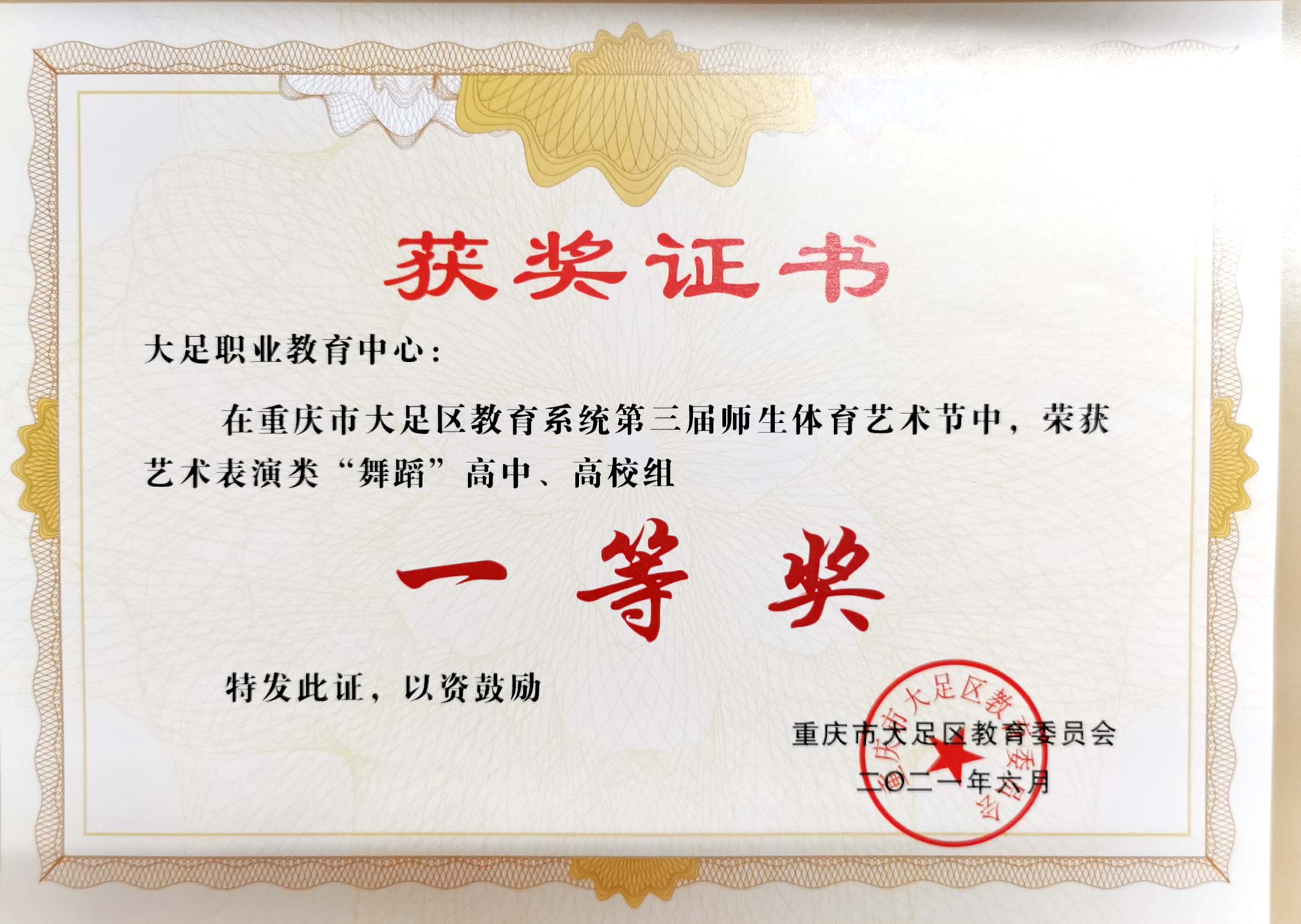重庆市大足区教育系统第三届师生体育艺术节表演类“舞蹈”高中、高校组 一等奖