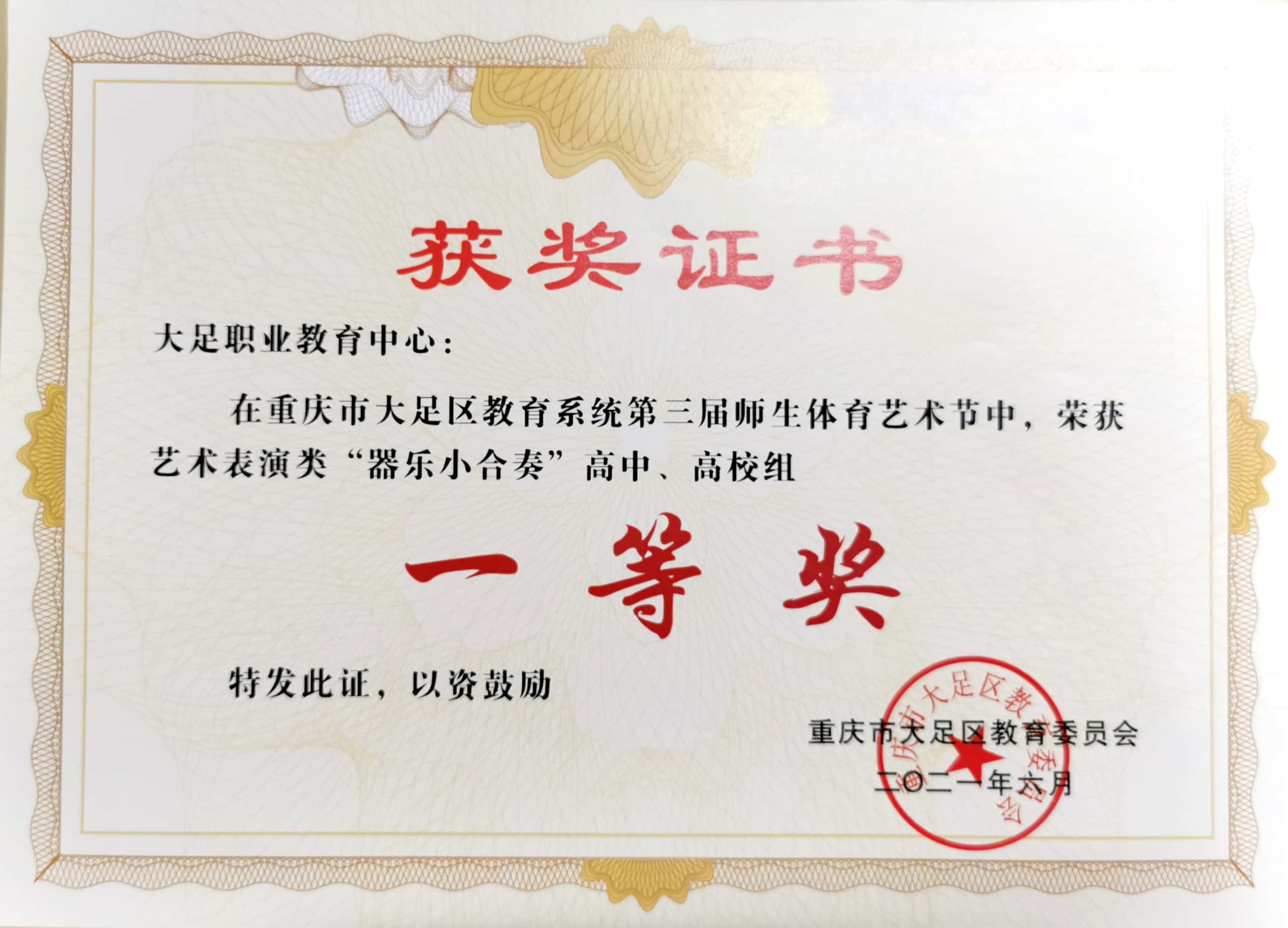 重庆市大足区教育系统第三届师生体育艺术节艺术表演类“器乐小合奏”高中、高校组 一等奖