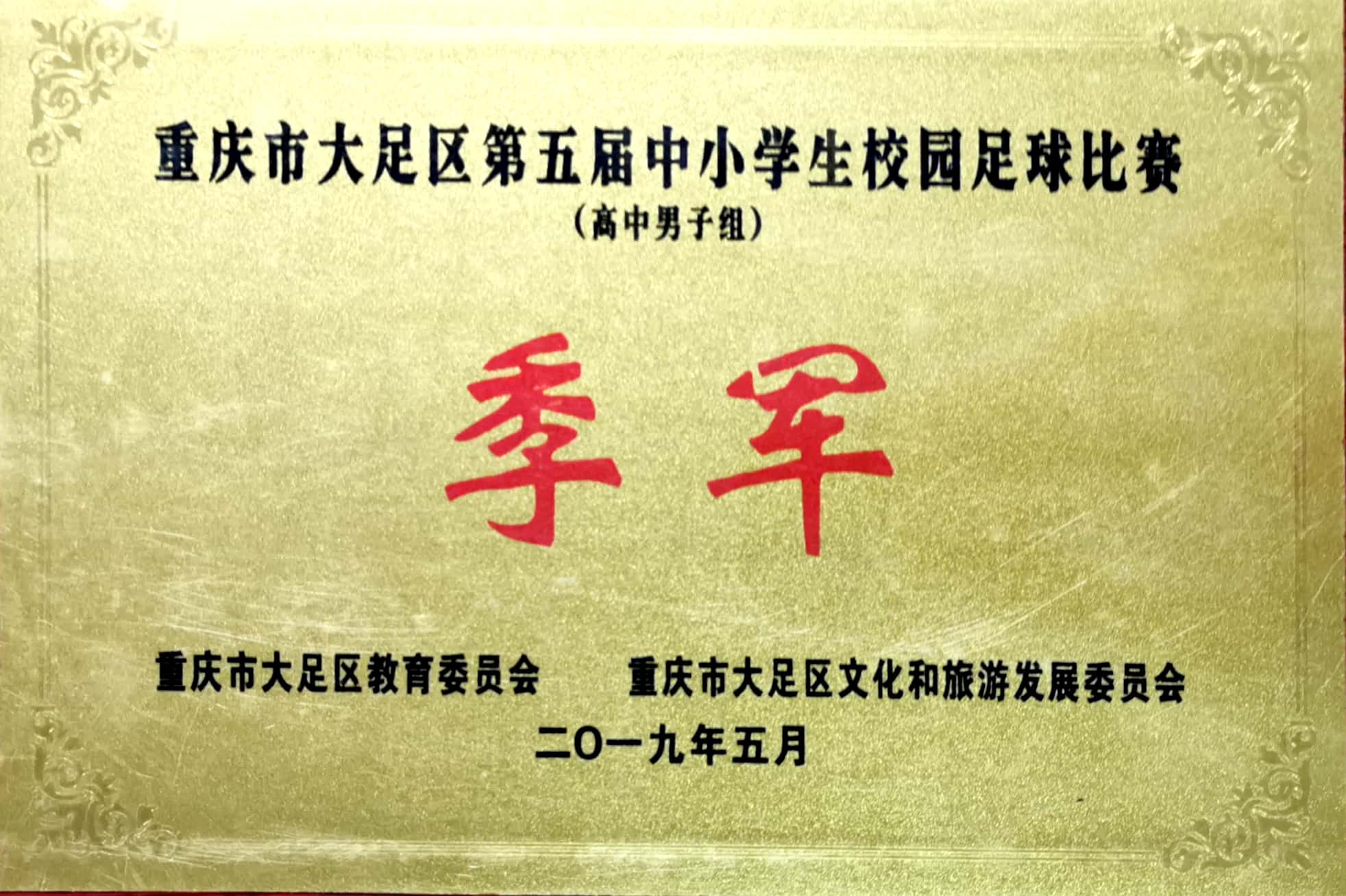 2019年重庆市大足区第五届中小学校园足球比赛(高中男子组)季军