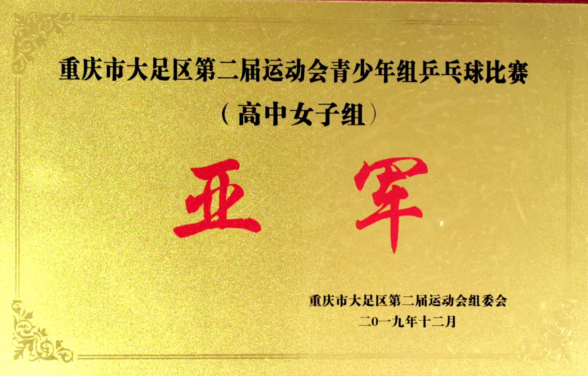 重庆市大足区第二届运动会青少年组乒乓球比赛(高中女子组)亚军