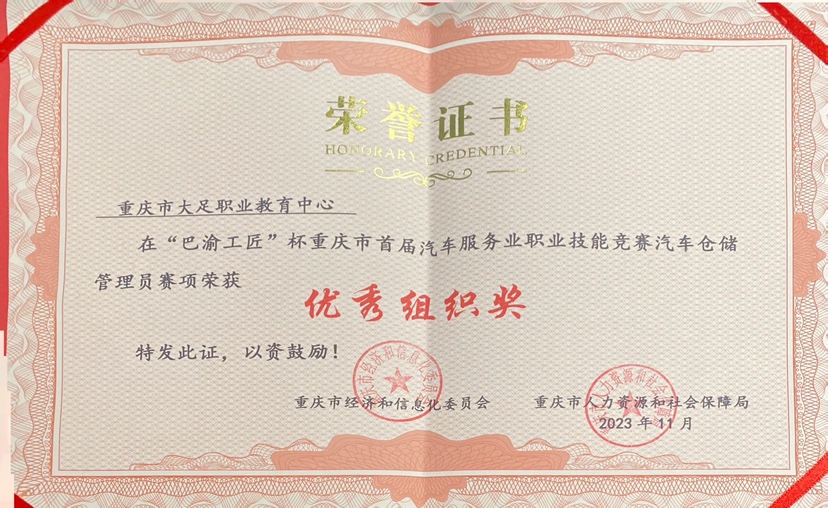 “巴渝工匠”杯重庆市首届汽车服务业职业技能竞赛汽车仓储管理员赛项优秀组织奖