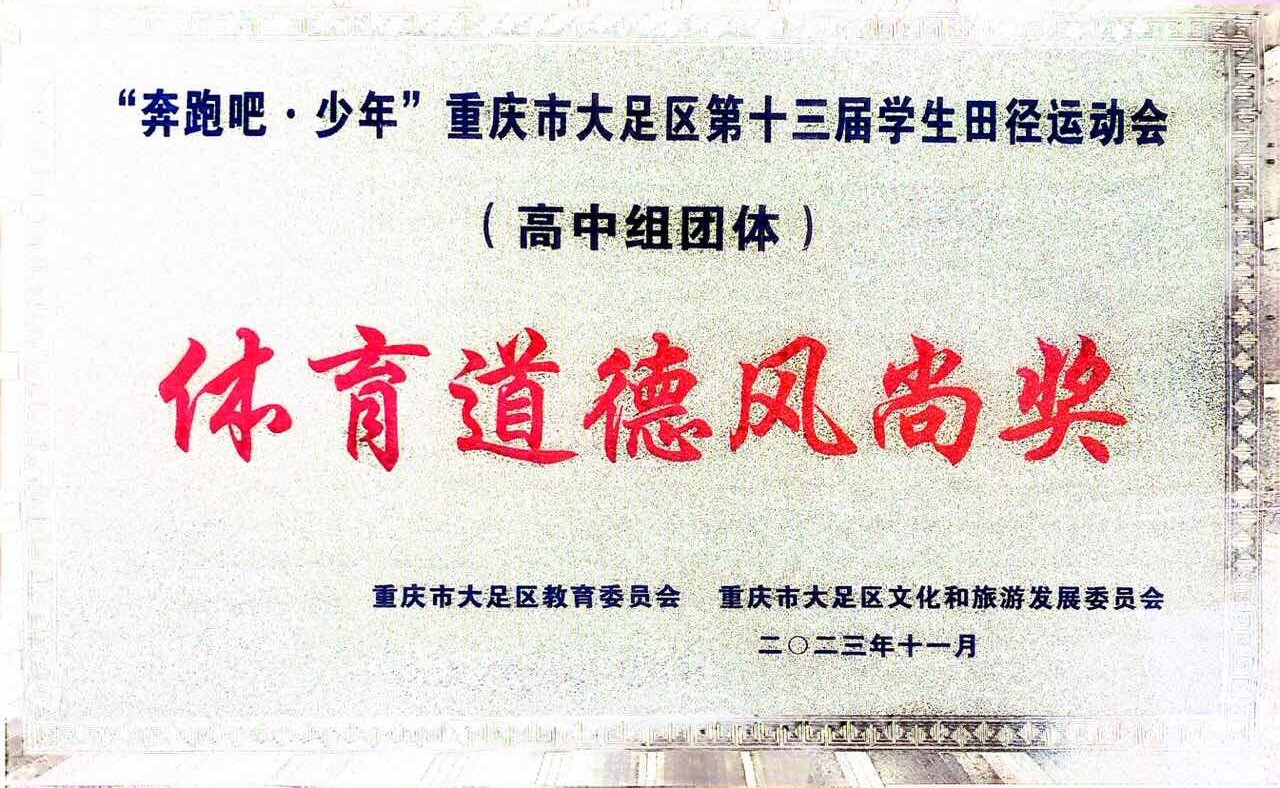 “奔跑吧少年”重庆市大足区第十三届学生田径运动会(高中组团体)体育道德风尚奖