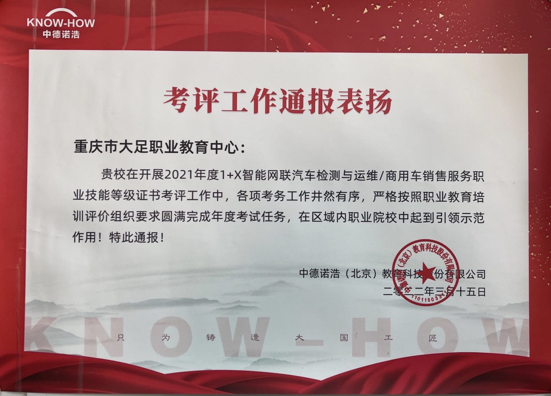 中德诺浩考评表扬