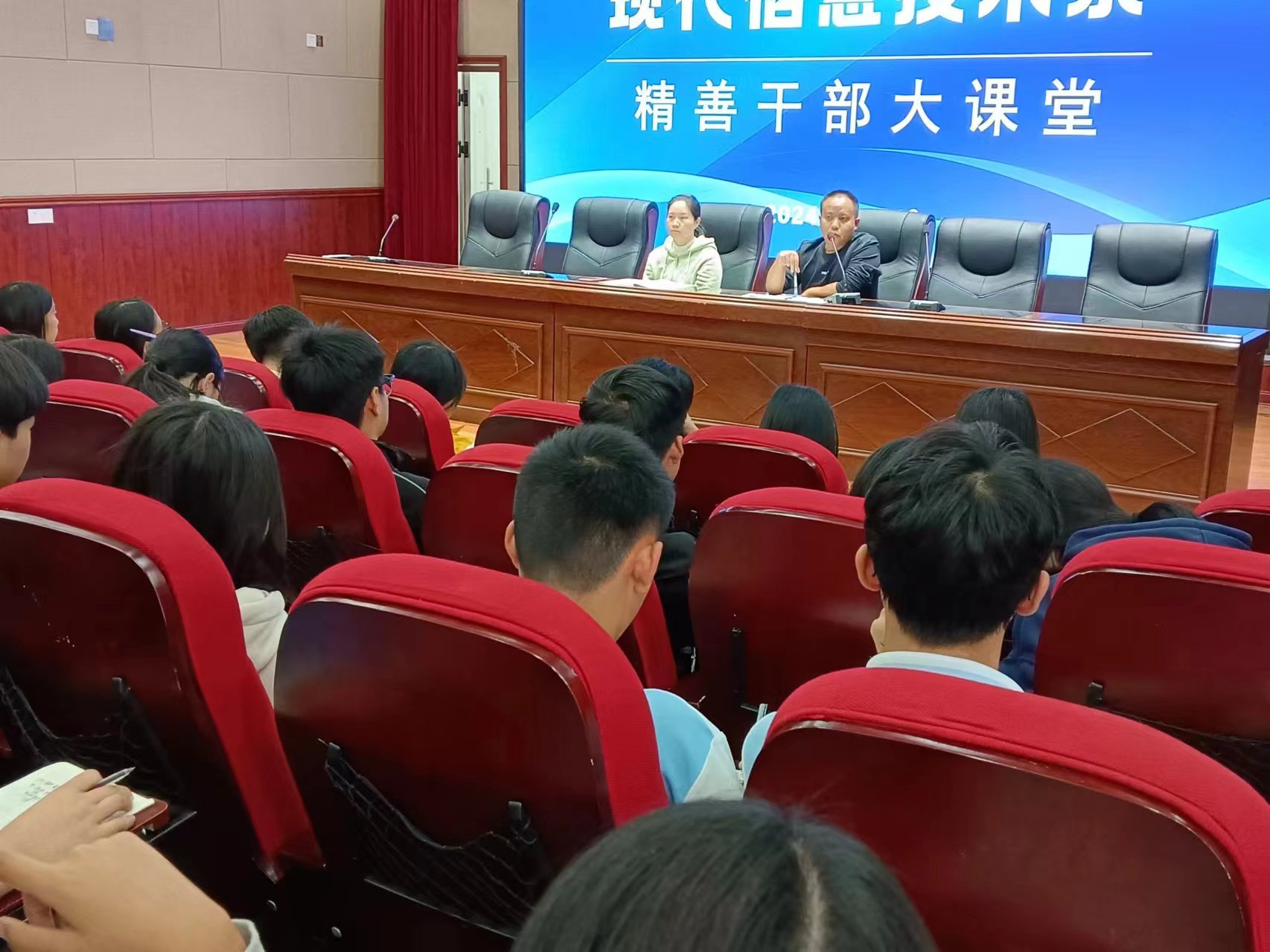 2024-2025学年上期期中后,职教中心现代信息技术系针对系上各班班委出现角色定位不、缺乏自主管理服务意识等普遍问题特别组建精善德育大课堂学生干部培训班,要求各班班长、团支书带头,班委会成员,团支部成员利用课余时间参加培训,各项培训教育工作按计划顺利开展。