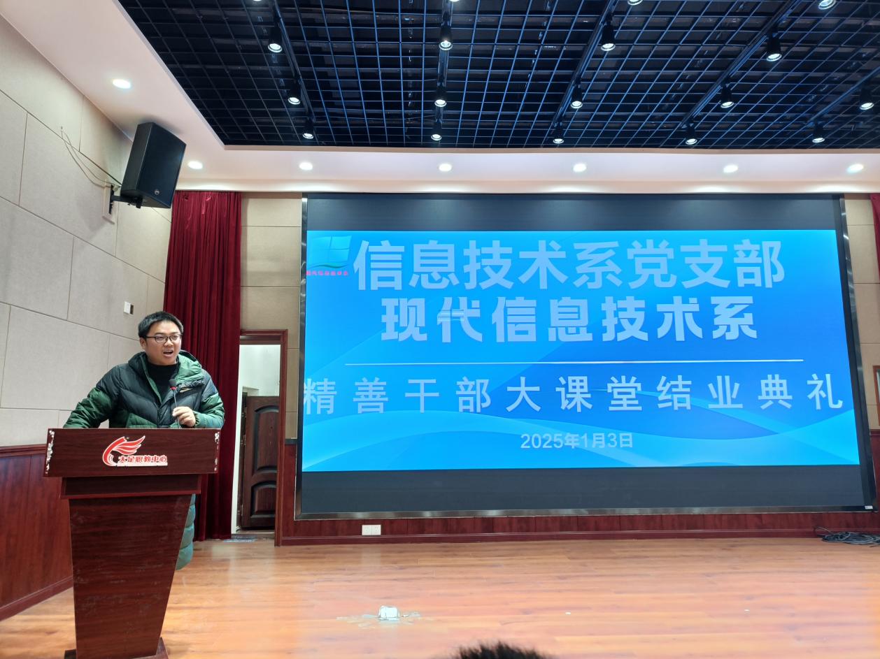 2025年1月3日重庆市大足职业教育中心现代信息技术系在第三学术报告厅举行了2024-2025学年度上期精善大课堂结业典礼暨表彰大会。本次活动由蔡圣翔老师主持,学生处主任吴骥,信息技术系副主任岳菊出席了活动,旨在庆祝精善大课堂本期活动的圆满结束,激励学生在未来的学习生活中继续弘扬校园精善主题文化,内化于心,外化于行