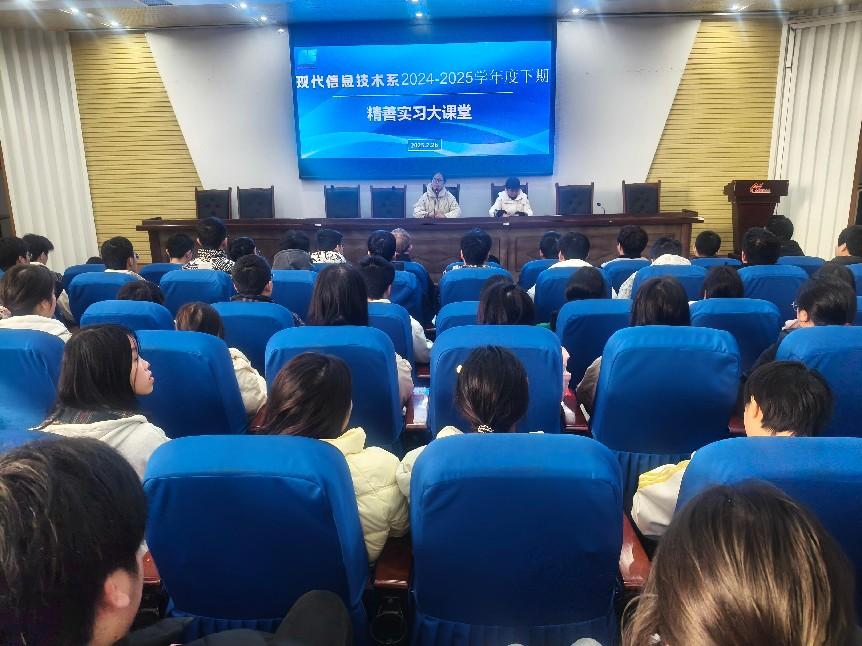 2025年2月26日上午,重庆市大足职业教育中心现代信息技术系在第一学术报告厅组织开展2024-2025学年度下期“精善实习大课堂”活动。本次活动由系副主任岳菊主持,特邀资深带队老师孙宗萍老师作为主讲嘉宾,分享带队实习经验,鼓励学生参与实习提升技能水平。
