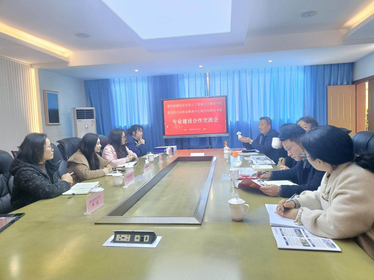 2025年3月19日,重庆市大足职业教育中心现代信息技术系与重庆能源职业学院人工智能与大数据学院专业建设合作交流会在大足职教中心励志楼二楼会议室顺利举行。会议由大足职业教育中心教务处主任李波主持。大足职业教育中心副校长彭冬梅,现代新技术系副主任岳菊以及能源职业学院的相关领导、老师参会。