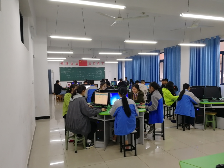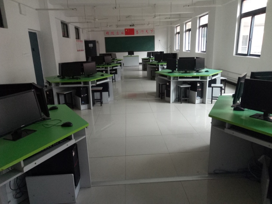 学校现有计算机专业各实训室12个,分别是动漫设计实训室1个,二维动画实训室1个,辅助软件实训室2个,计算机硬件检测实训室1个,计算机综合布线实训室1个,计算机企业网搭建实训室1个,平面设计实训室2个,影视编辑实训室1个,计算机组装实训室2个;各实训室共有539台计算机,5套计算机硬件检测实训台,4个工位的综合布线和6组网络专业设备,能提供612个实训工位供学生同时开展实训,设备总价值540余万元。