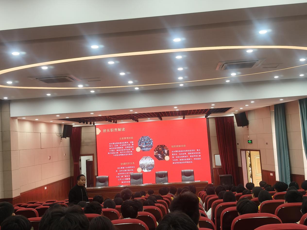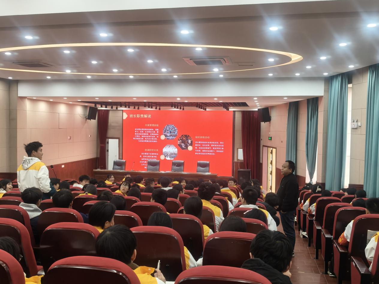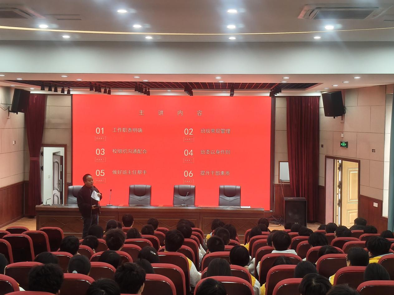 随后,黄俊彪老师对班级干部进行了系统的培训。他从六个方面展开培训,一是班级干部的工作职责,二是班级常规管理的具体要求、三是如何与学校团委、学生会进行有效沟通配合,四是班委如何以身作则,五是怎样做班主任的得力助手,六是如何提升自身素质。黄俊彪老师结合实际案例,深入浅出地分析了班级管理中的常见问题和解决方法,为班级干部们提供了宝贵的指导意见。