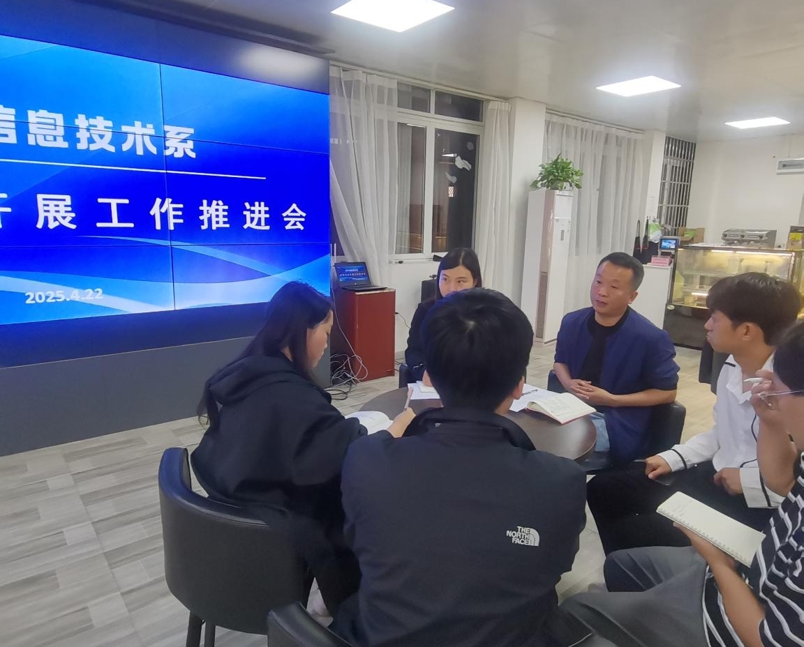 2025年4月21日下午,工作小组在二教楼休闲会议室召开了社团活动工作推进会。系部主任邹汝全、IT星空社团负责人赵博、3D创客社团负责人杨峰、天驰无人机社团负责人彭科杨等人参加会议。会议由系部主任邹汝全主持。