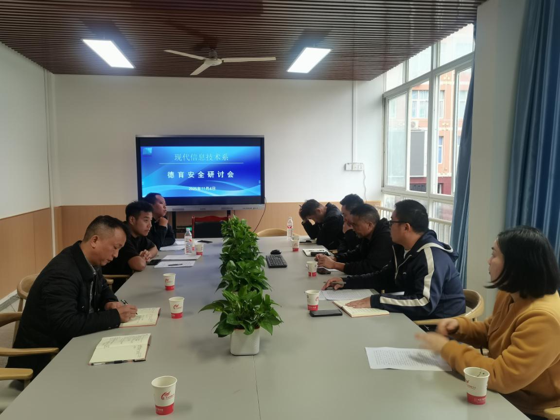 为全面落实立德树人根本任务,切实筑牢校园安全稳定基石,11月5日,大足职教中心现代信息技术系在1212会议室组织召开德育安全专题研讨会。学生处主任吴骥、副主任谢清河、副主任张德琴、安稳办副主任贺杨、培训部主任宋熹等学校职能部门负责人莅临指导,现代信息技术系主任邹汝全及系部管理人员齐聚一堂,以“问题为导向、以实效为目标”,深度剖析系部德育安全工作痛点,共商系统化育人方案,为培养“精技立业、善行天下”的新时代技术技能人才保驾护航。