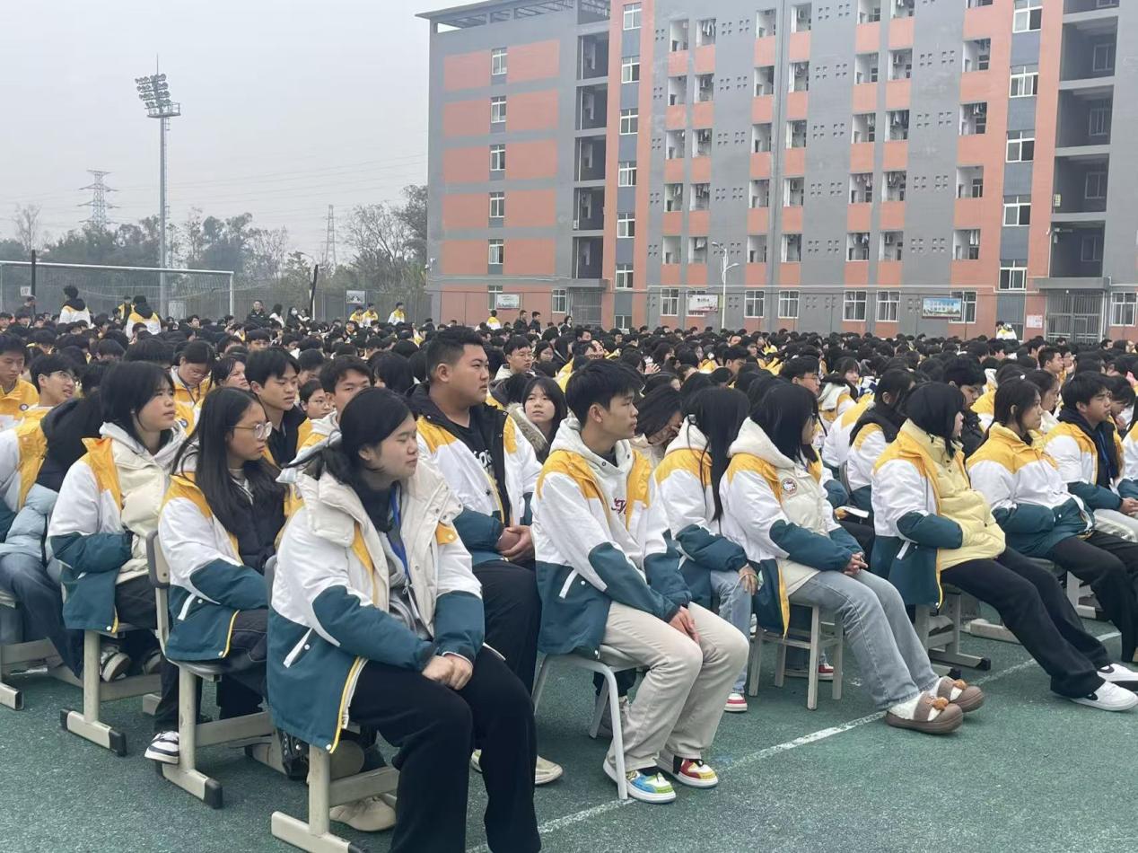 为深入贯彻落实立德树人根本任务,凝聚全系奋进力量,夯实育人成效,2025年12月17日,重庆市大足职业教育中心现代信息技术系第四学月学生大会在学校足球场圆满召开。本次大会以“总结反思,砥砺前行”为主题,旨在复盘阶段性成长、表彰先进典型、明确奋进目标,推动学风校风提质增效,为同学们全面发展保驾护航。学生处主任吴骥、系部管理人员黄俊彪老师及全系师生齐聚一堂,共赴这场凝心聚力的成长盛会。