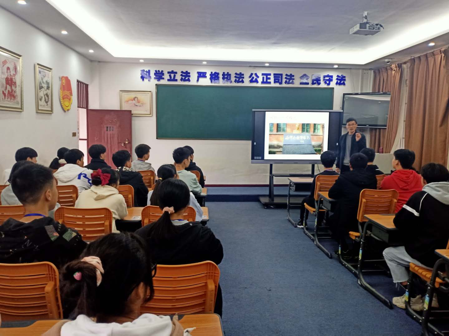 课上,何昌华老师精神饱满,以“胸怀祖国,承担责任”主题,分胸怀祖国、承担责任、牢记责任三个部分进行授课,每个部分皆旁征博引,引经据典,通过宣讲先进典型事例、阐释名言警句等方式,结合学生生活实际,绘声绘色讲述,耐心细致教育。学生听讲认真,笔记积极,听得饶有趣味,师生积极互动,课堂氛围热烈。