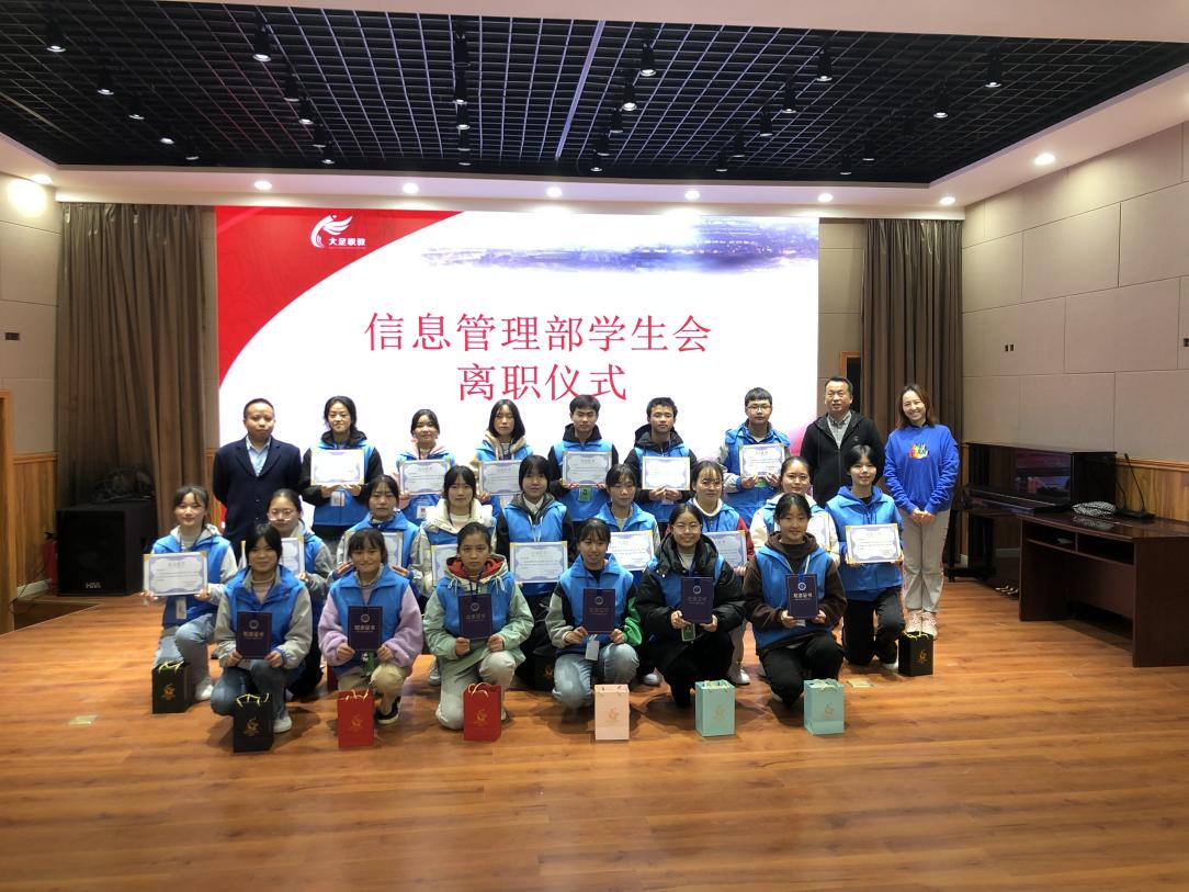 2021年11月17日,职教中心信息管理部学生会干部光荣离职会在第二学术报告厅顺利举行。信息管理部副部长邹汝全及专业部全体管理人员参与了离职会活动
