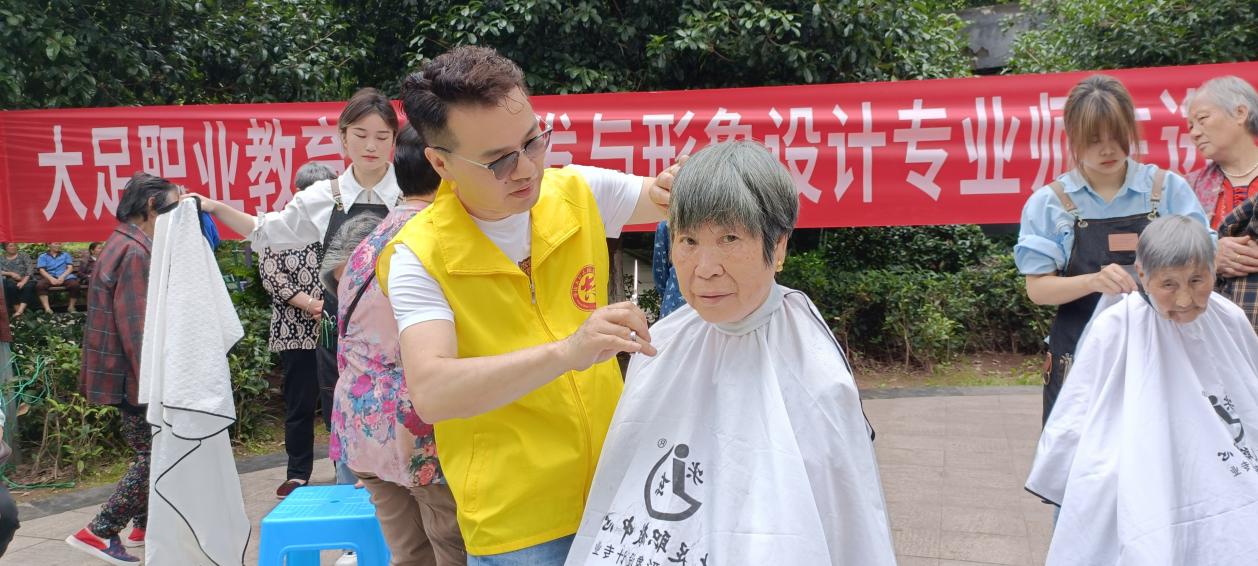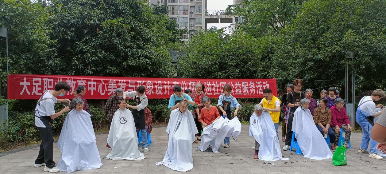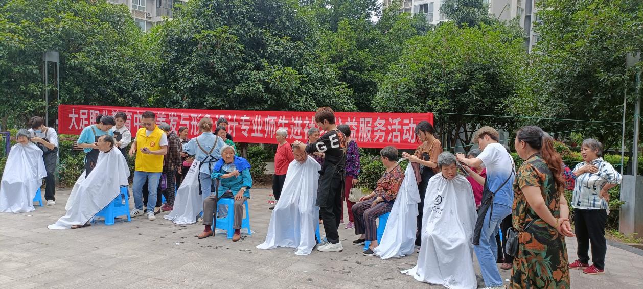 6月17日上午,一群来自大足职业教育中心美发与形象设计专业师生志愿者冒着酷暑走进龙滩子街道社区,免费为社区老年居民开展公益理发活动。