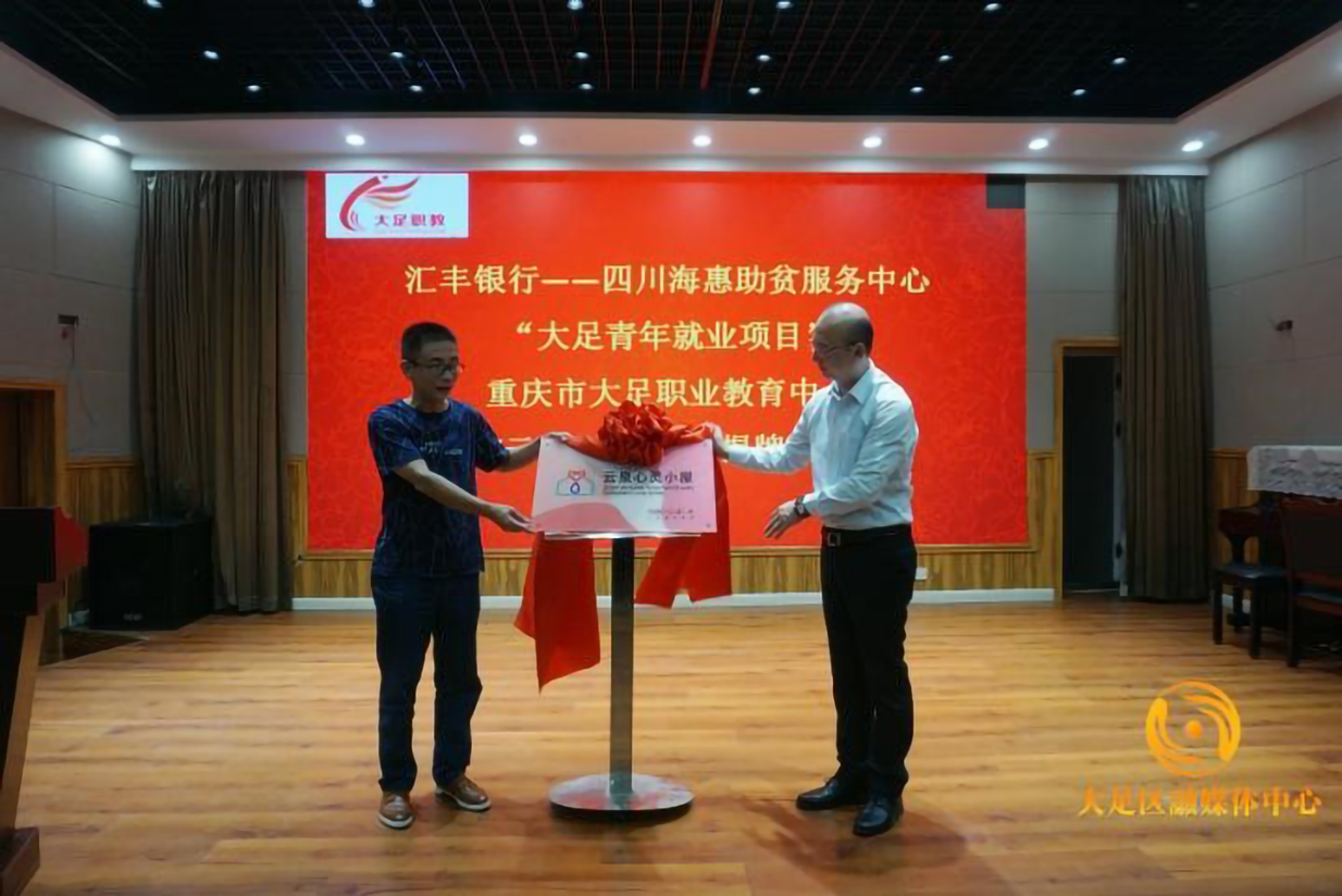 掌上大足讯(记者 邓小强)9月24日,大足区汇丰村镇银行携手四川海惠助贫服务中心实施“大足青年就业项目”,在大足区职教中心举行“云泉心灵小屋”揭牌仪式。