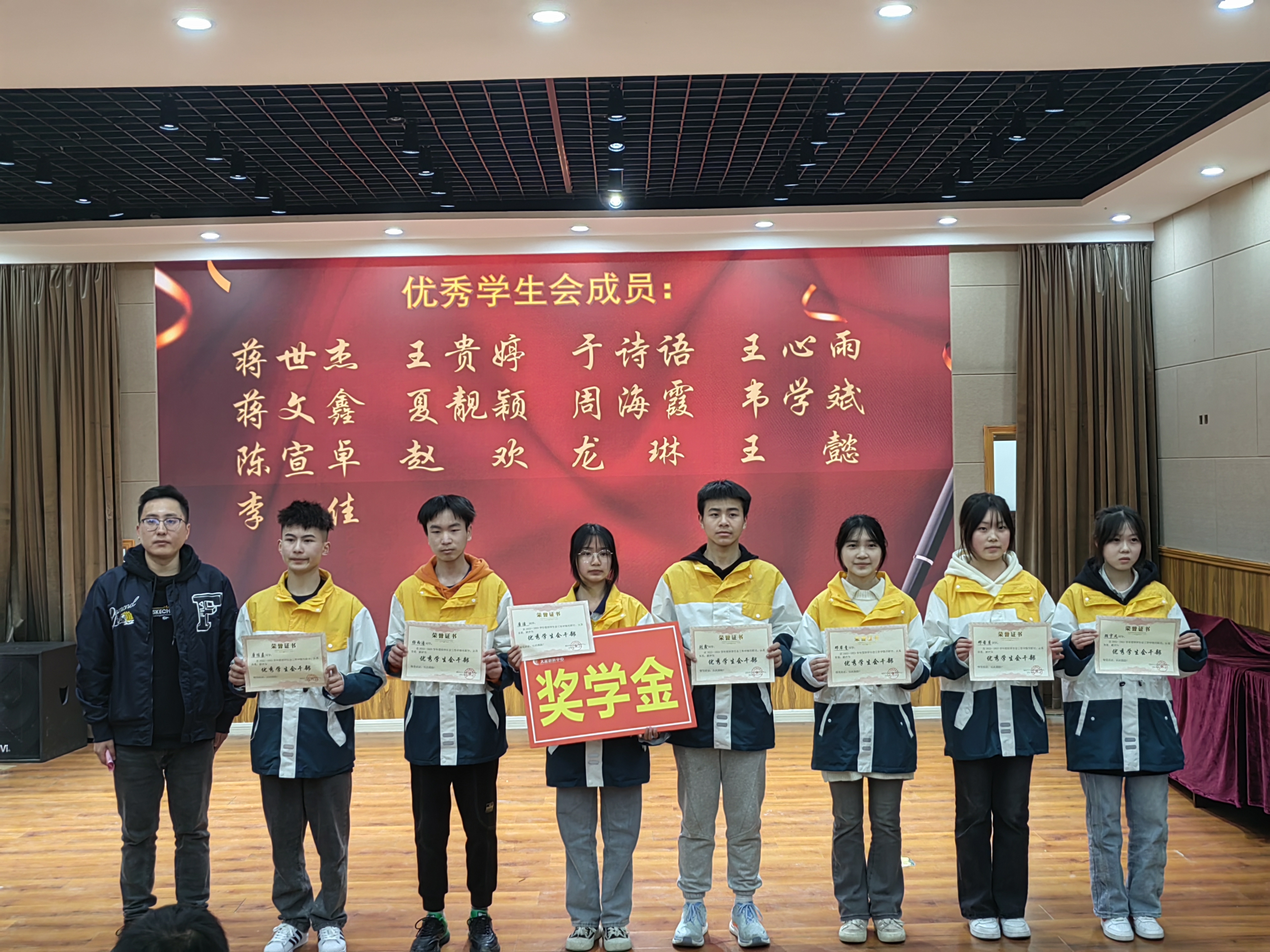 宋熹和王良中分别宣读了“优秀学生会成员”“优秀学生会干部”表彰名单,依次为获奖学生颁奖,鼓励他们在接下来的工作中依然保持十足的干劲,为校园的美好建设添光增彩。