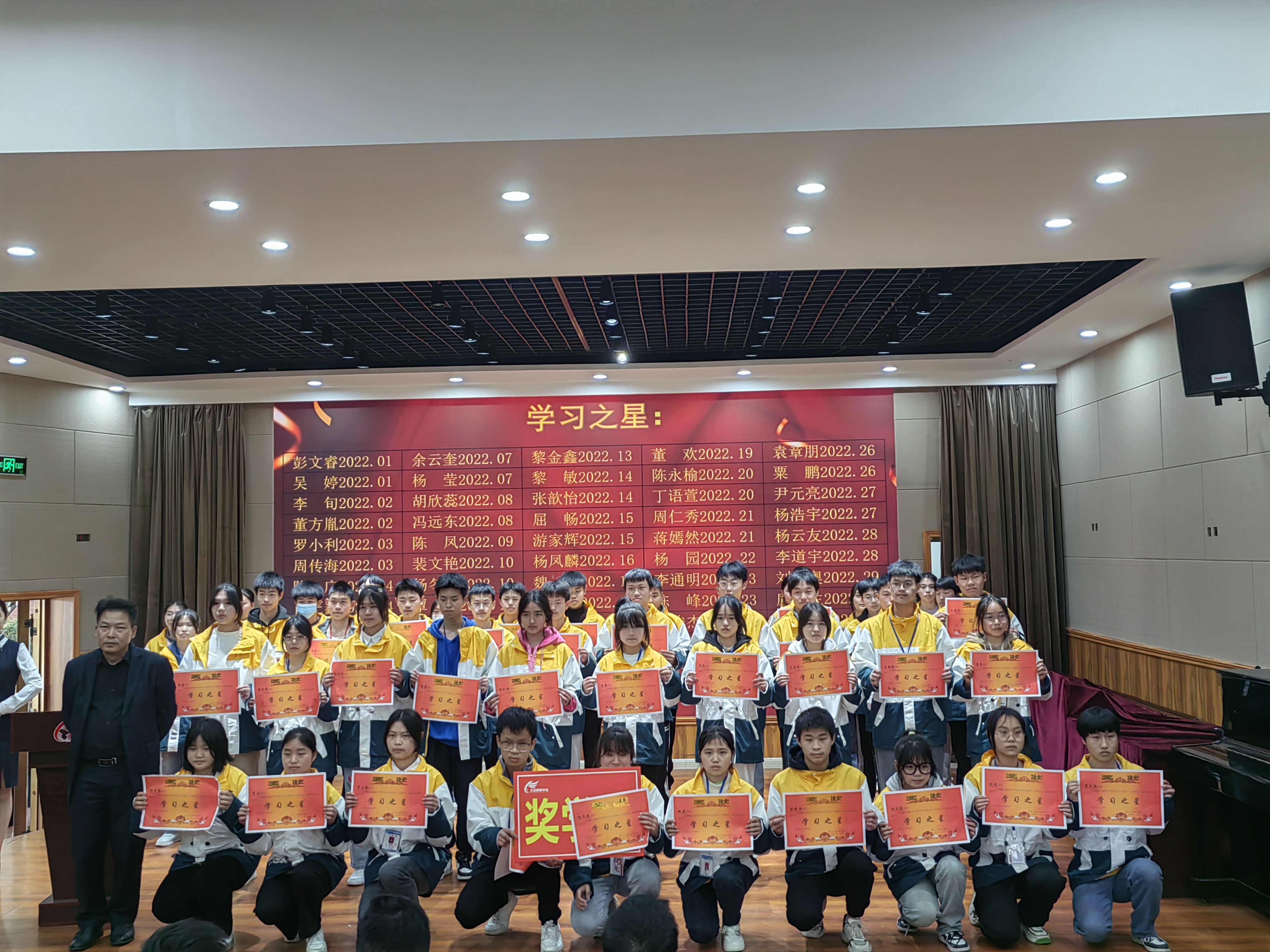 罗在兵和罗和苗老师分两批次宣读“学习之星”表彰名单,为获奖学生颁发奖状、奖学金,鼓励他们将努力化作双桨,在学海泛舟,矢志不渝地驶向理想的彼岸。