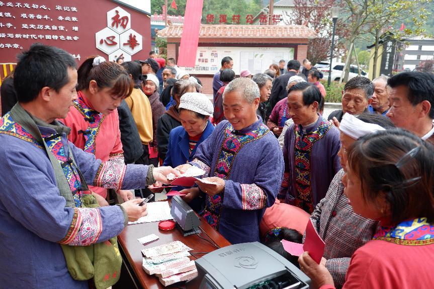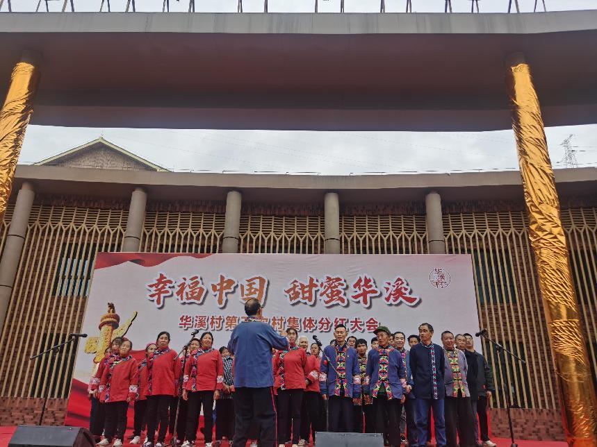 “幸福中国 甜蜜华溪”主题华溪村第五次村集体经济分红大会在村委办公大楼前广场上隆重举行。分红大会受到各级各部门领导的高度重视,石柱县人大副主任秦荣华亲临现场指导工作,受邀嘉宾单位代表见证了集体经济盈利分红幸福时刻。分红大会上有村民们的感恩文艺汇演、2022年度“华溪榜样”颁奖和入伍家庭颁奖。现场开展2022年度村民股权分红,先分红到组,再分红到人。在现场验钞后,以村民小组为单位分成4个分红小组,每组推选一名组长,由村支书王祥生向各组组长分发小组合计分红;获得小组分红后,各组长在现场指定分红桌将组员个人股权分红有序分发到人。村民们手捧奖牌、奖金、分红的收入,脸上洋溢着幸福的笑容。